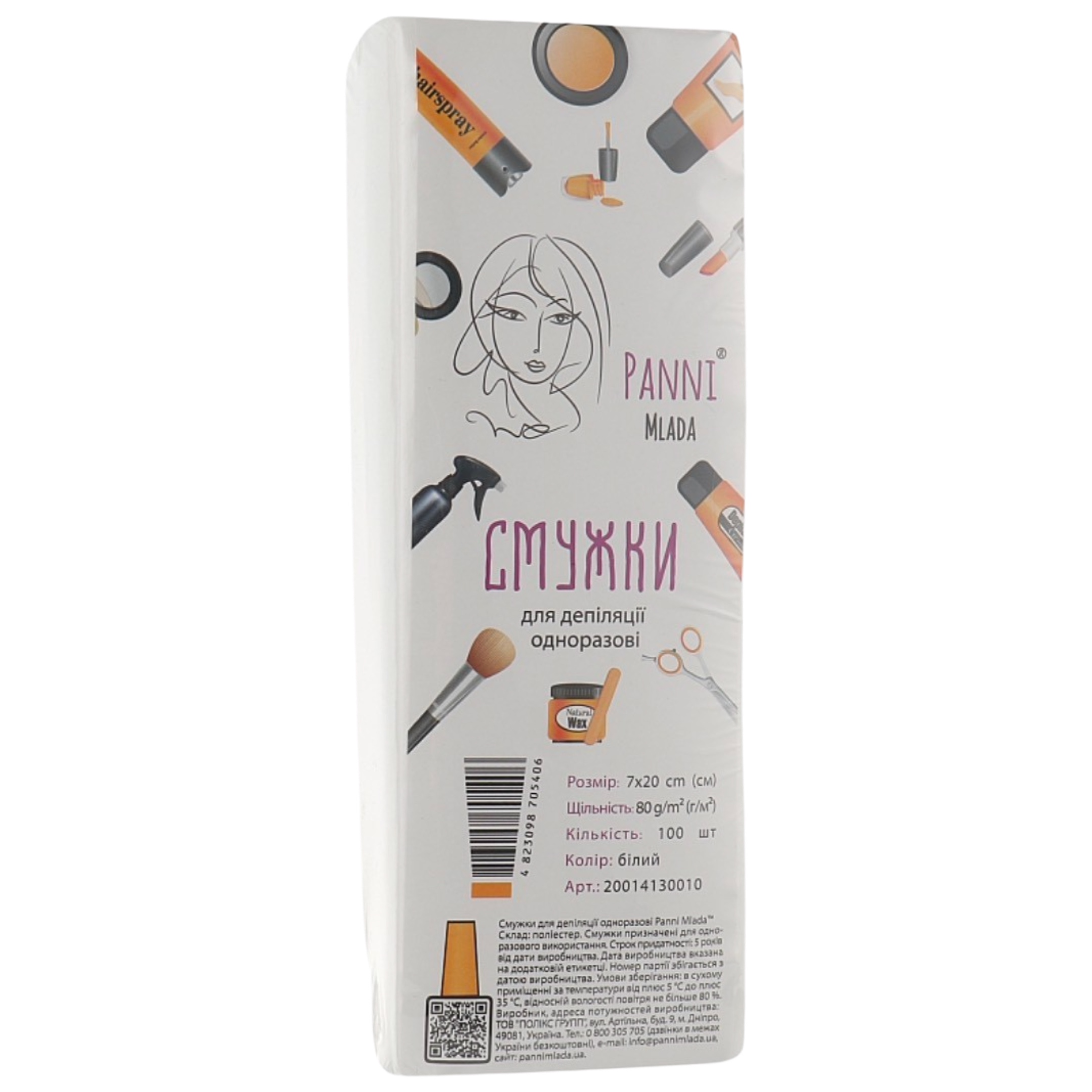 PANNI MLADA Смужки для депіляції паперові 7x20см 80 г/м2 (100 шт/пач) Колір:білий