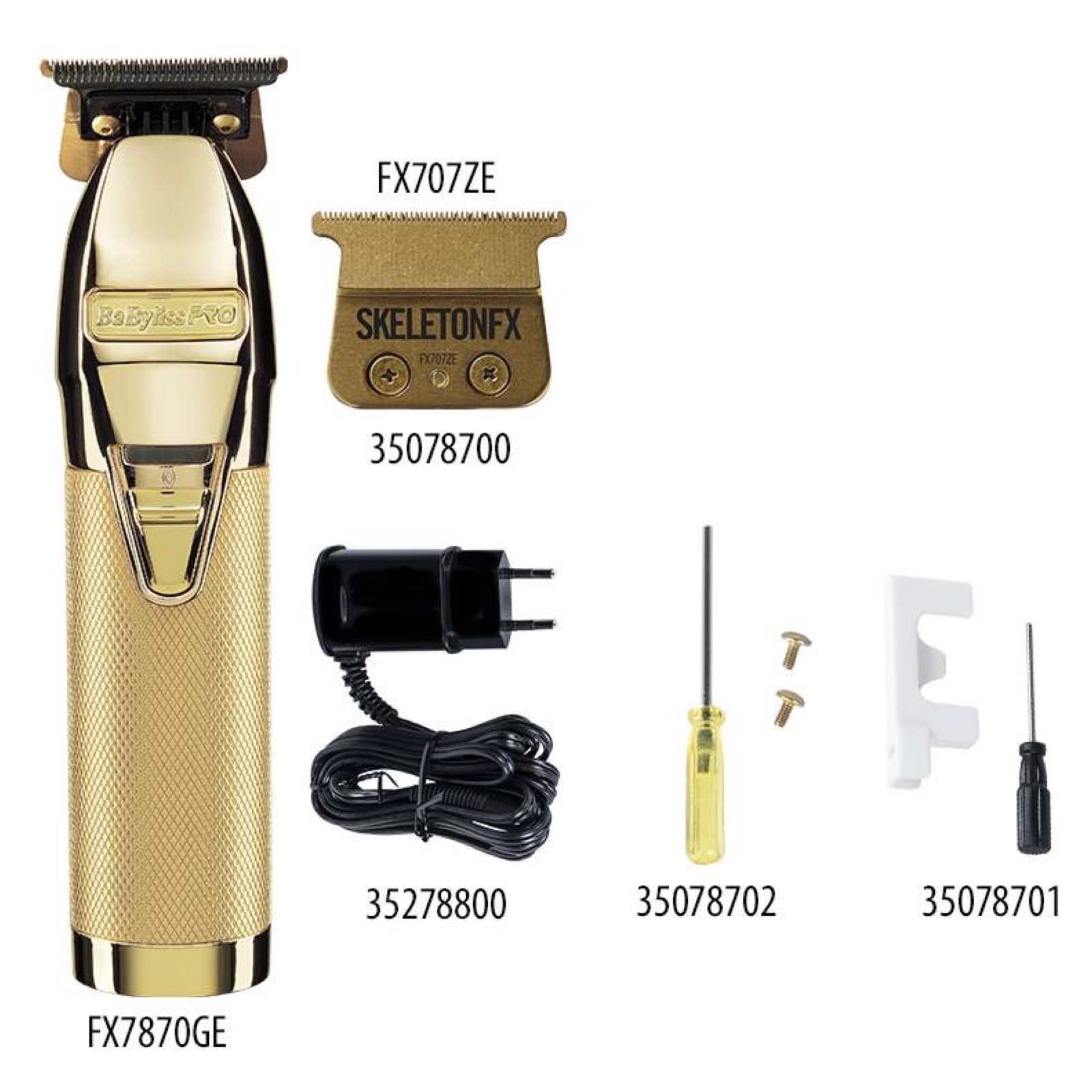 Тример BaByliss PRO FX7870GE оснащений T-подібним відкритим ножовим блоком шириною 40 мм і можливістю настройки мінімального зрізу волосся під «нульовий зазор». Завдяки такому рішенню, модель може бути ефективно використана не тільки для окантовки, а й для створення hair tattoo, стрижки бороди і роботи в складних важкодоступних місцях.