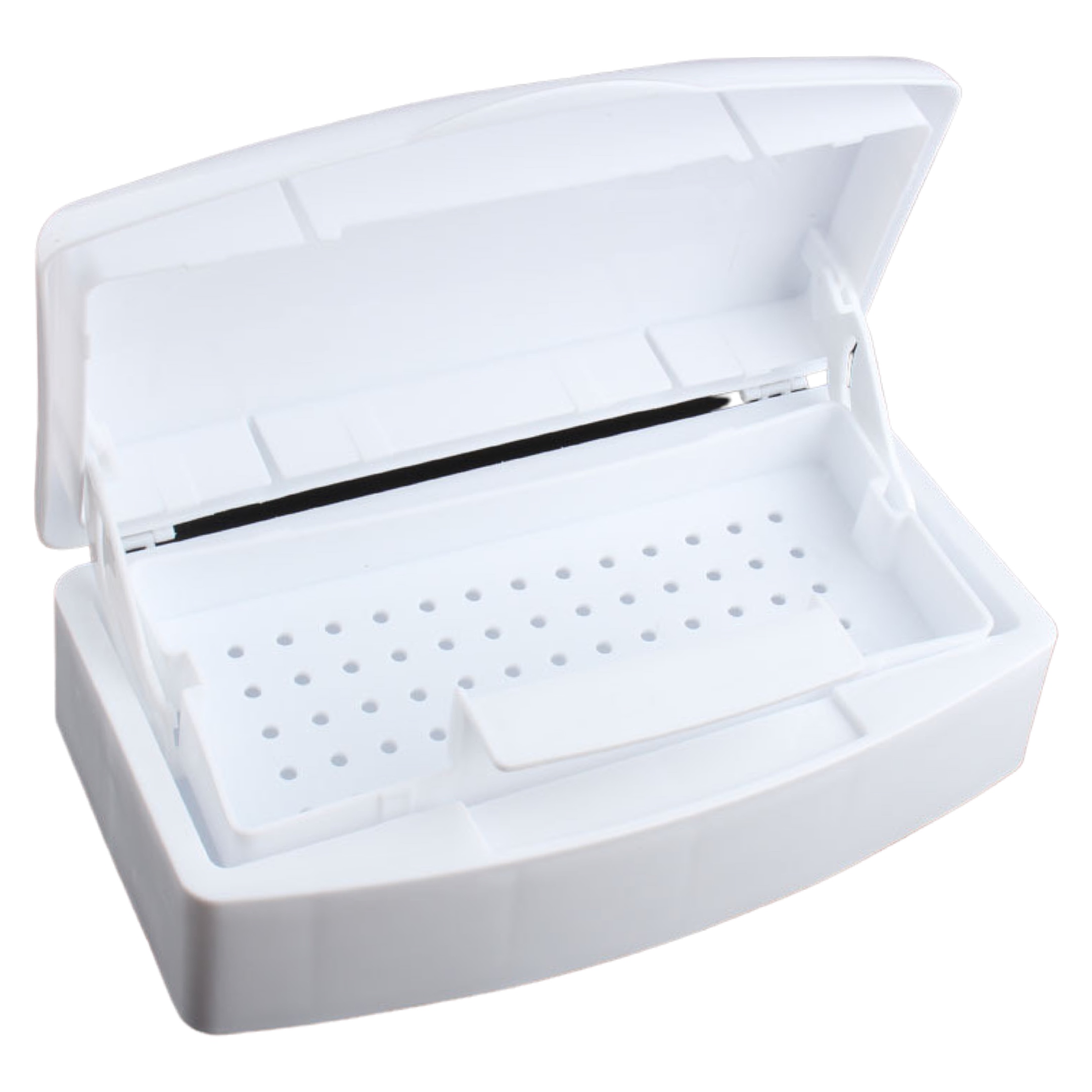 Зручний і простий у використанні контейнер для дезінфекційного розчину. Використовується для дезінфекції інструментів. Піддон має пластикову ручку, для зручності при добуванні. Зовнішня кришка, влаштована таким чином, що при її закритті піддон з інструментами занурюється на дно.