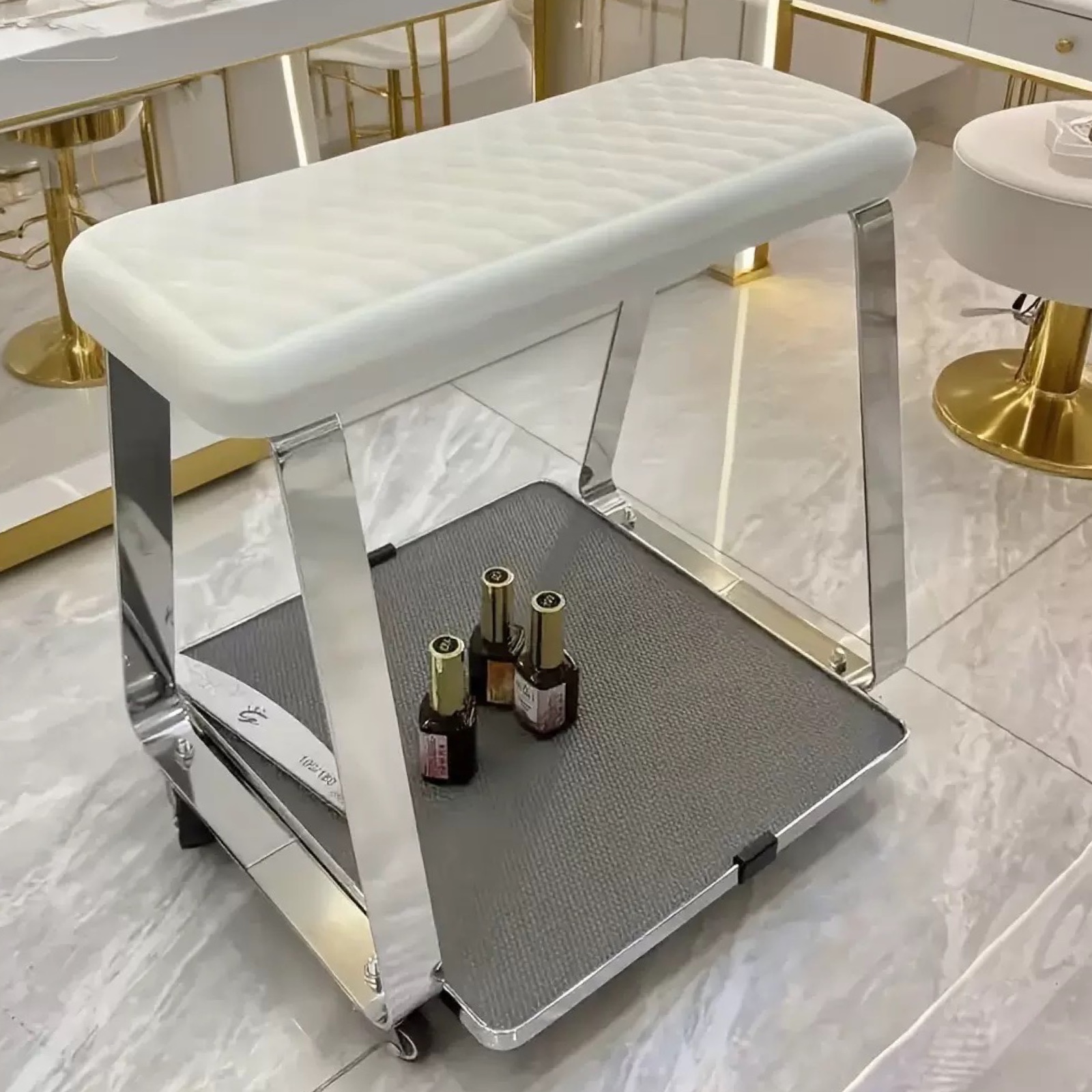 Легка, але надійна платформа виготовлена з міцних матеріалів, що гарантує тривалий термін служби та стійкість до навантажень. Її можна легко переміщати та налаштовувати у зручному положенні, що робить підставку практичною як для професійних салонів, так і для домашнього використання.