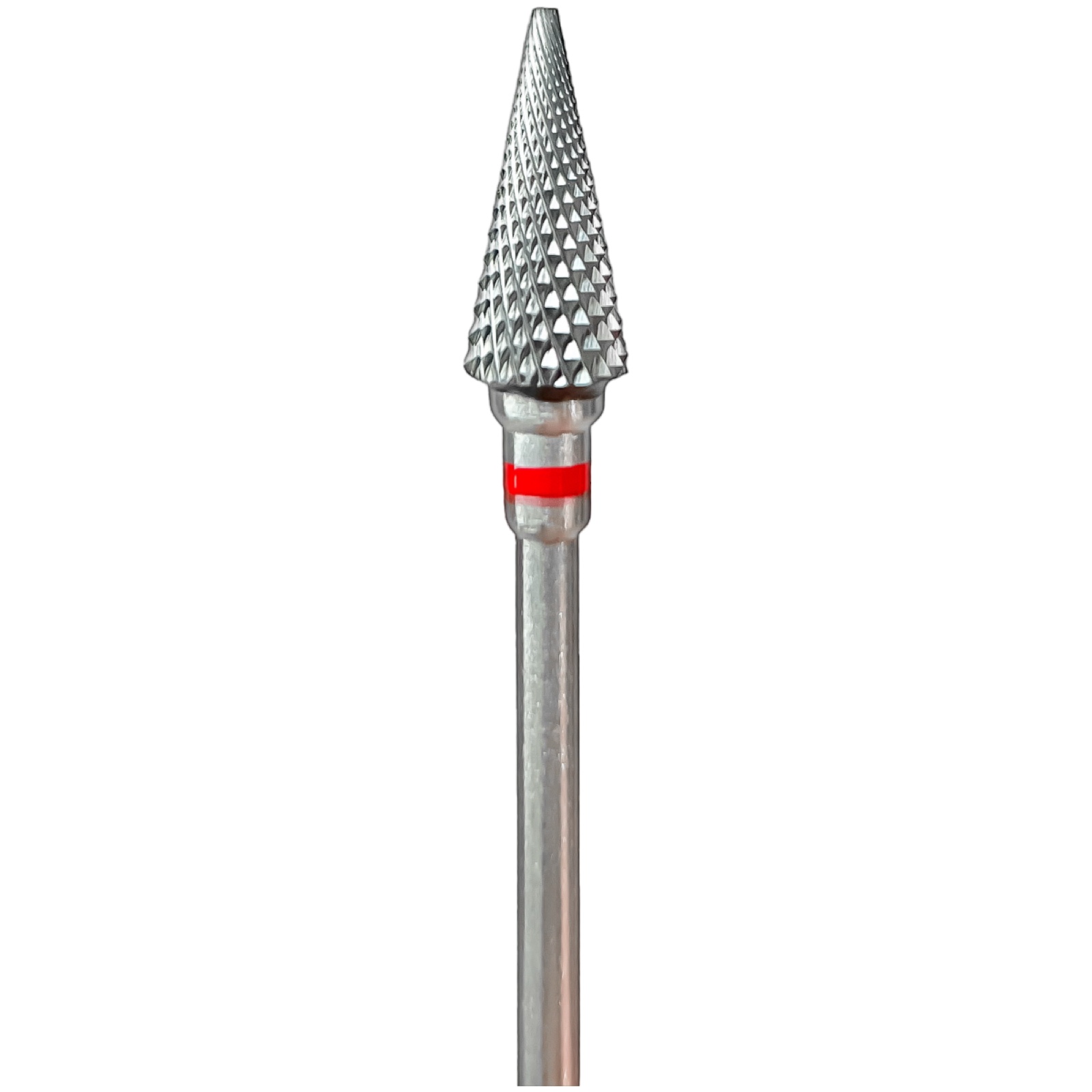 Фреза у формі ялинки використовується для швидкого та акуратного зняття штучного покриття. Завдяки своїй загостреній формі дозволяє працювати навіть у важкодоступних зонах біля кутикули та бічних валиків, що робить її ідеальною для професійного апаратного манікюру та корекції нарощених нігтів.