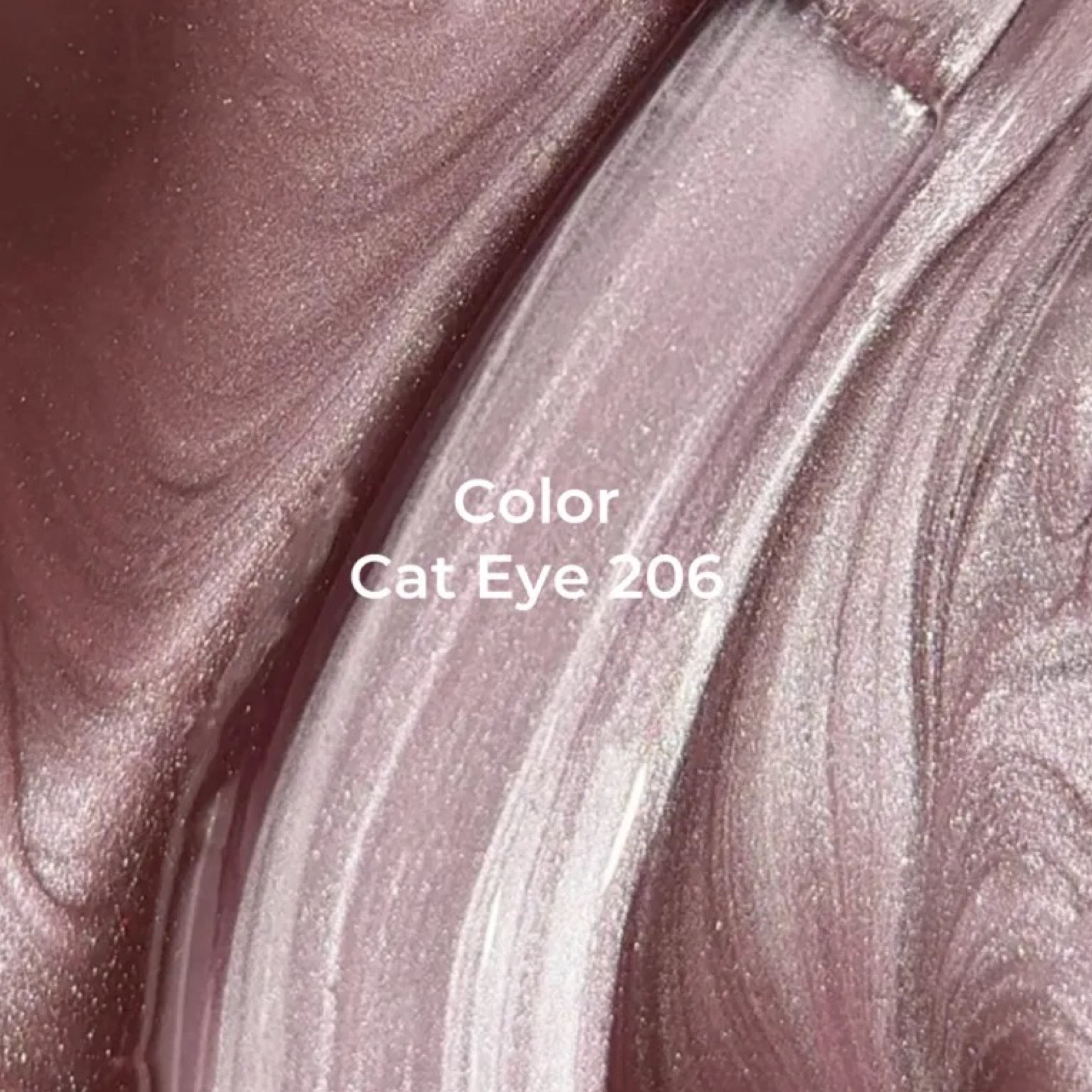 Color Cat Eye №206 ідеально пігментований гель-лак лягає як в один, так і в два тонкі шари. Він не залишає смуг при нанесенні, легко самовирівнюється та має середньогусту консистенцію. У складі продукту містяться дрібні металеві частинки, які реагують на дію магніту, переміщаючись у ще полімеризованому шарі покриття, створюючи чарівний відблиск в дизайні.