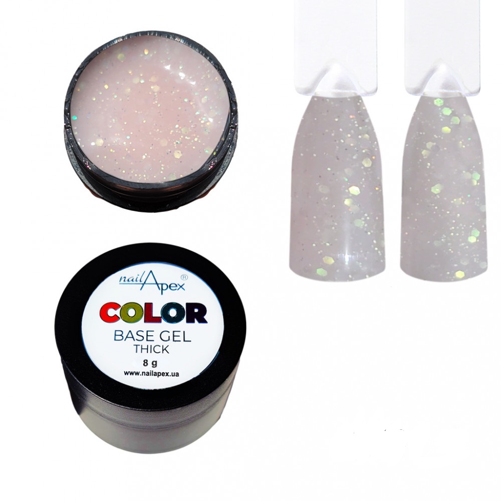 Опис NailApex Color Base Gel №8 База молочна з рожевими блискітками і глітером, 8 мл
