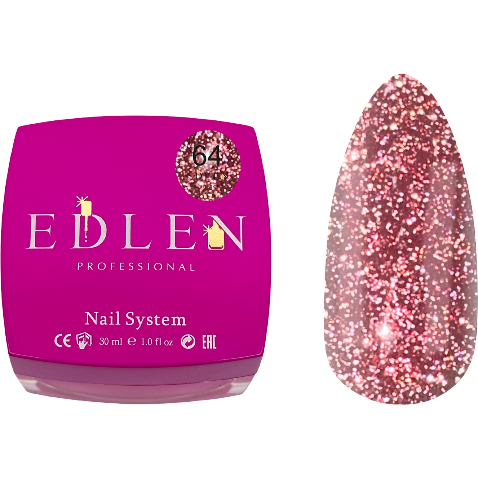 EDLEN Builder Gel №64 Flash Світловідбиваючий гель для нарощування, 30 мл