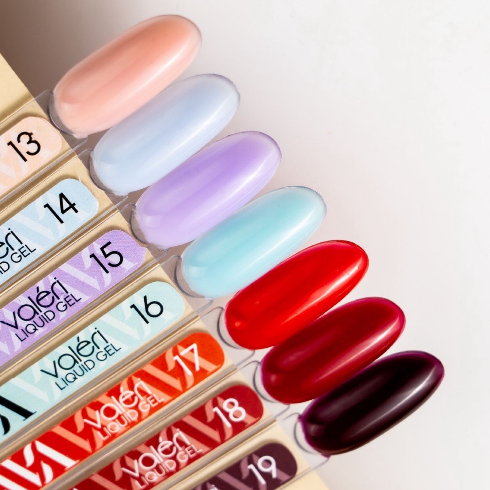 19 відтінків Valeri Liquid Gel оберуть любителі ніжного літнього френча, розтяжки кольору чи гарного градієнта.