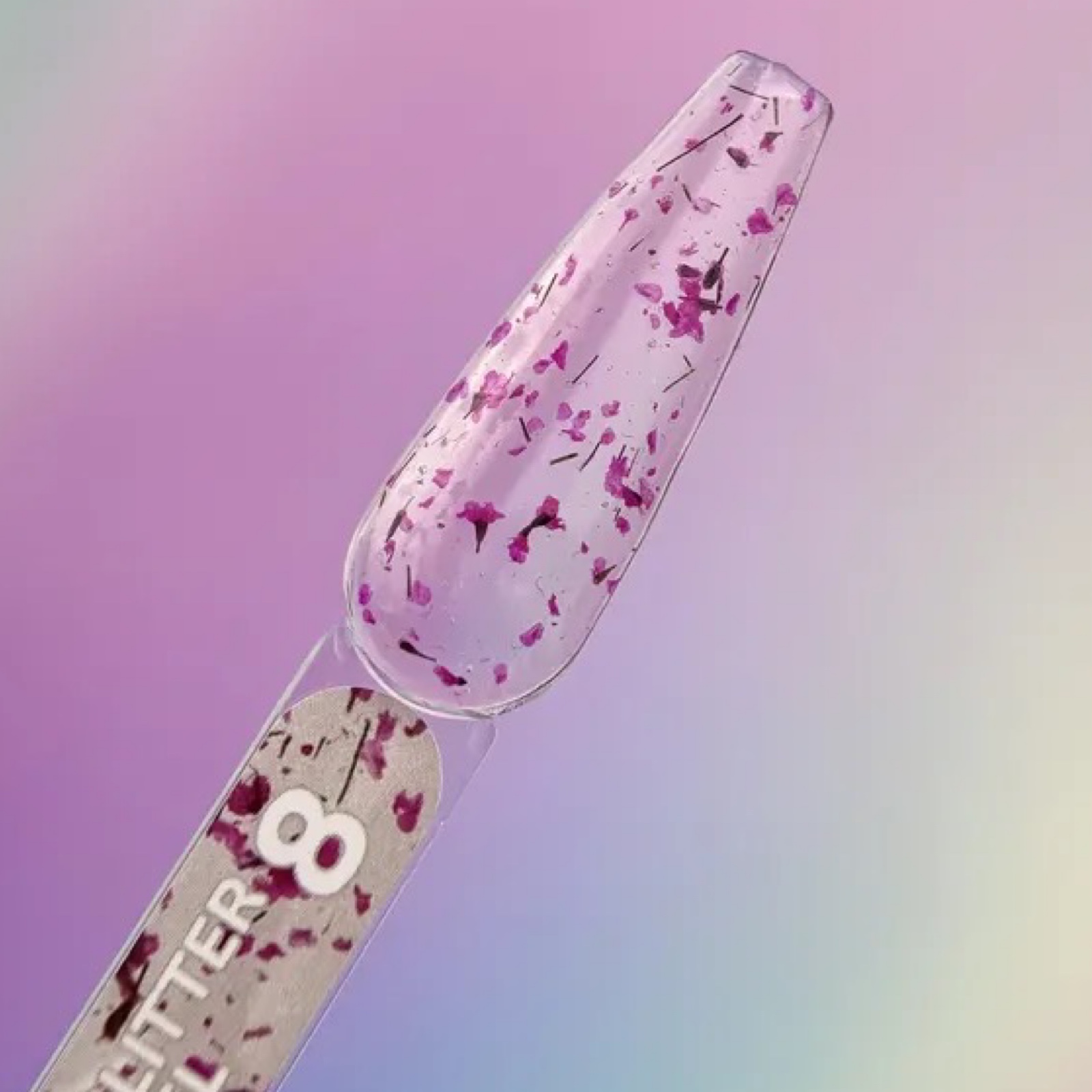 Glitter Gel — прозорий гель середньої в’язкості з сухоцвітами.