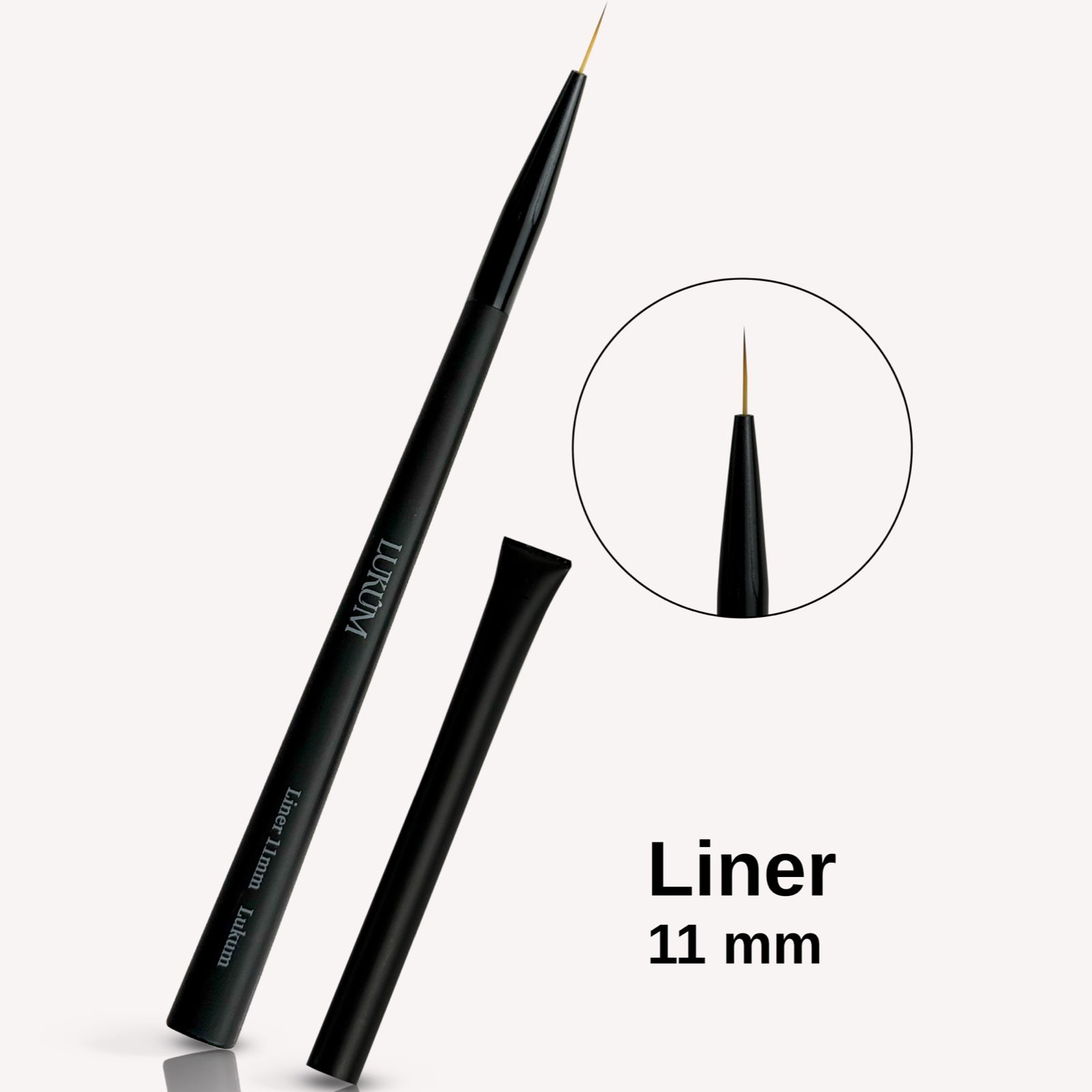 LUKUM Пензлик Liner, 11 мм — тонкий професійний пензлик, створений для максимально точних ліній та деталізації в нігтьовому дизайні. Завдяки довжині ворсу 11 мм він забезпечує плавне, контрольоване проведення рівних ліній будь-якої довжини та складності.