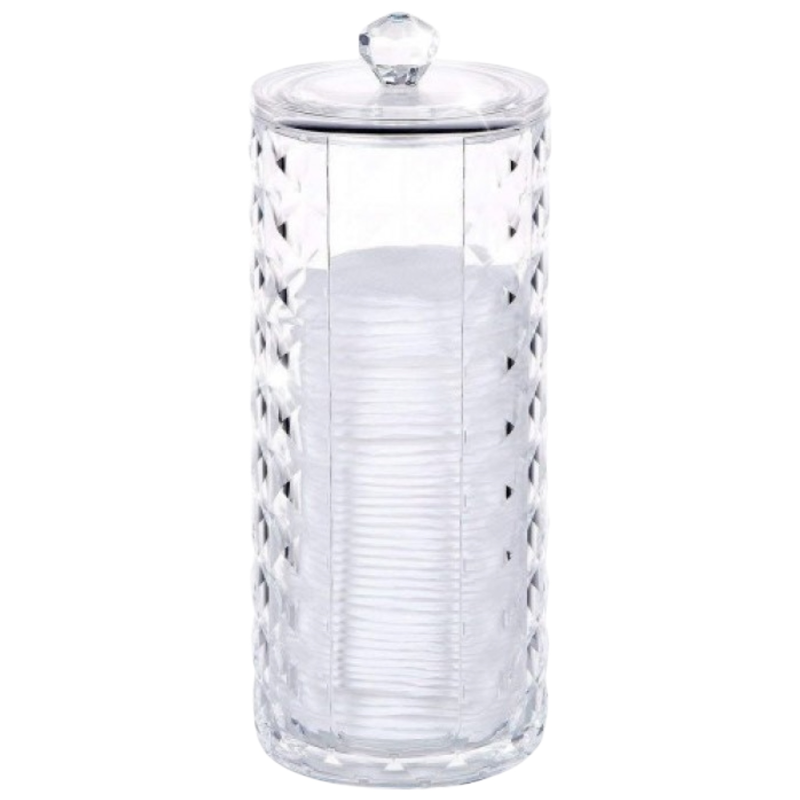 Ватні диски і безворсовие серветки - одноразові матеріали, що вимагають спеціального зберігання, оскільки контактують зі шкірою під час різних бьюті- і нейл-процедур. Питання збереження їх гігієни, захисту від пилу і забруднень, а також можливість комфортного застосування та знаходження завжди під рукою є актуальним завжди. І вирішити його на всі 100% дозволить такий девайс, як органайзер для ватних дисків BoxUp FT-026 Diamond. Він має циліндричну форму, привабливий і доречний в будь-якому інтер'єрі дизайн. Наявність кришки захищає матеріали всередині від попадання пилу, забруднень. За рахунок прозорості завжди можна бачити, скільки дисків або серветок всередині і своєчасно поповнювати запаси. Органайзер сприяє економії місця, будь то стіл майстра або домашній туалетний столик.
