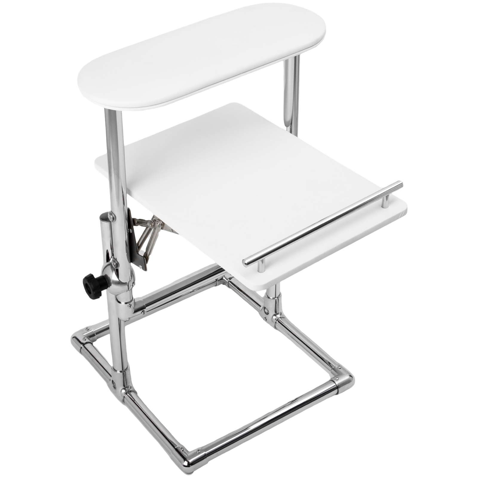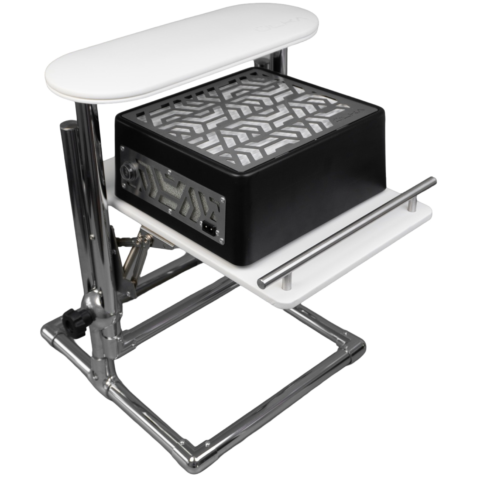 Підставка для педикюру – помічник для комфортної та ефективної роботи. Завдяки її зручній конструкції, майстер може легко розташувати ногу клієнта, витяжку та фрейзер, не витрачаючи час і сили на утримання витяжки на колінах.
