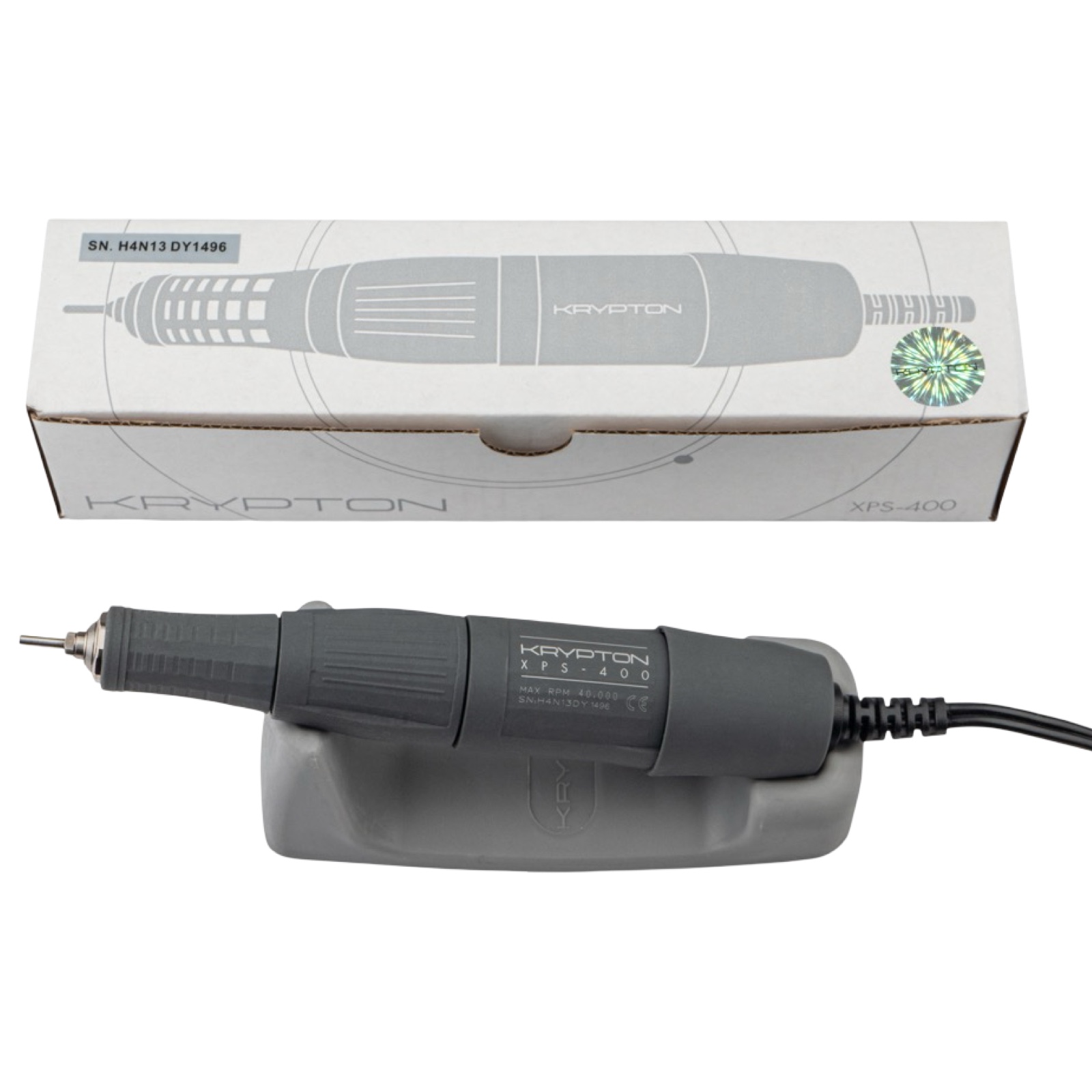 KRYPTON XPS-400 ручка фрезера для манікюру 40000 обертів легка, не ковзає та зручно лягає в руці, не вібрує у процесі використання. Вона захищена від перегріву внаслідок функції обдування — повітря потрапляє всередину, обдуваючи та охолоджуючи двигун у процесі роботи, що продовжує термін служби.