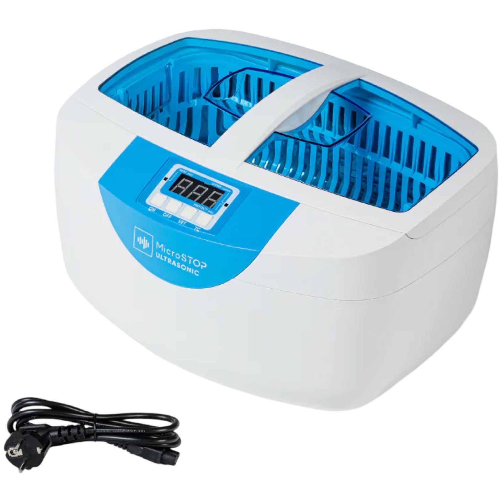 - Ультразвукове миття для інструментів Microstop MU-PROMAX 70 Вт оснащене просторим резервуаром з нержавіючої сталі об'ємом 2,5 л - дозволяє одночасно очищати велику кількість інструментів, що підвищує ефективність роботи. Для їх розміщення у комплекті передбачено кошик. Цифровий дисплей дозволяє легко настроювати параметри очищення та контролювати процес.