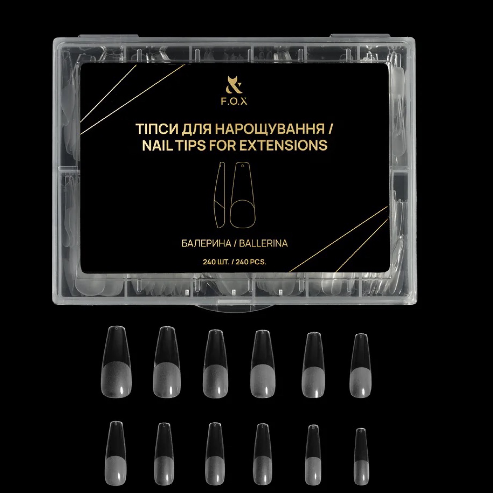 F.O.X Nail Tips For Extensions Тіпси для нарощування Балерина, 240 шт