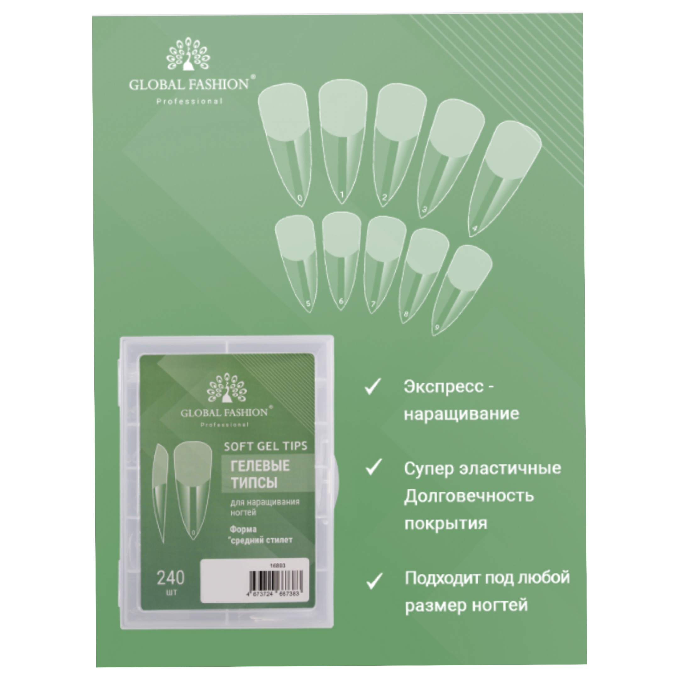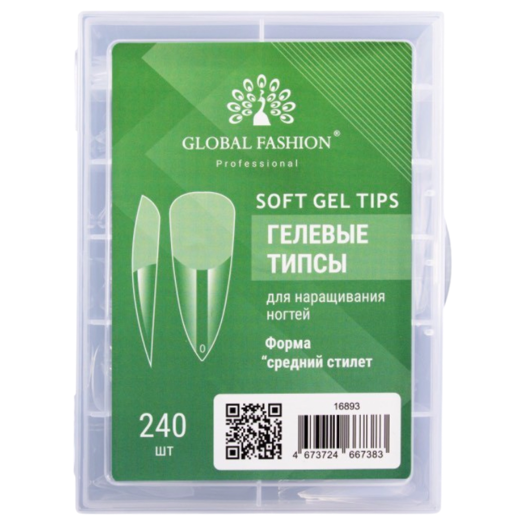 GLOBAL FASHION Soft Gel Tips Medium Stiletto Гелеві Тіпси, 240 шт