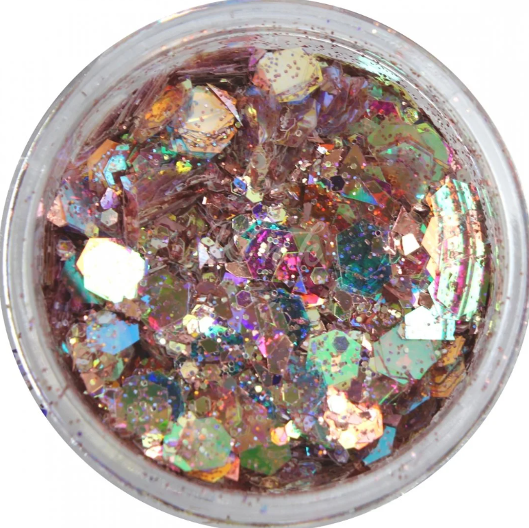 Це голограмна суміш блискіток різної форми мілкого та середнього помолу. Голограма відливає в фіолетово-дзеркальний відтінок . Дуже гарно лягають на будь яку поверхню, походять навіть візажистам. Як і весь Super Brocat.