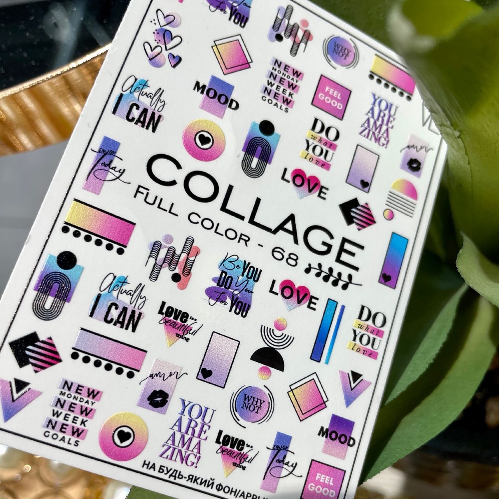Покладіть зображення на липкий шар, розподіліть його у потрібному положенні. Обережно притисніть.
