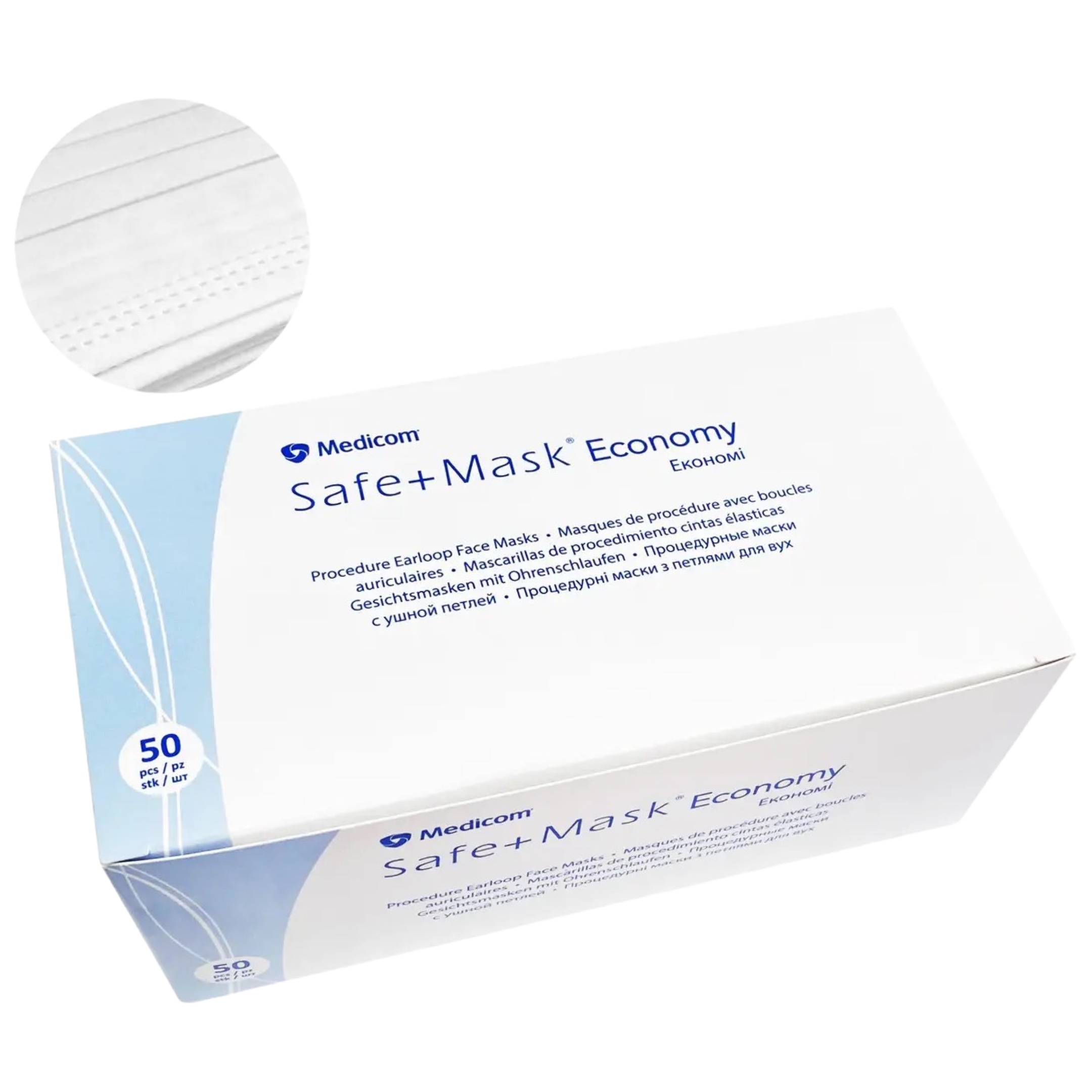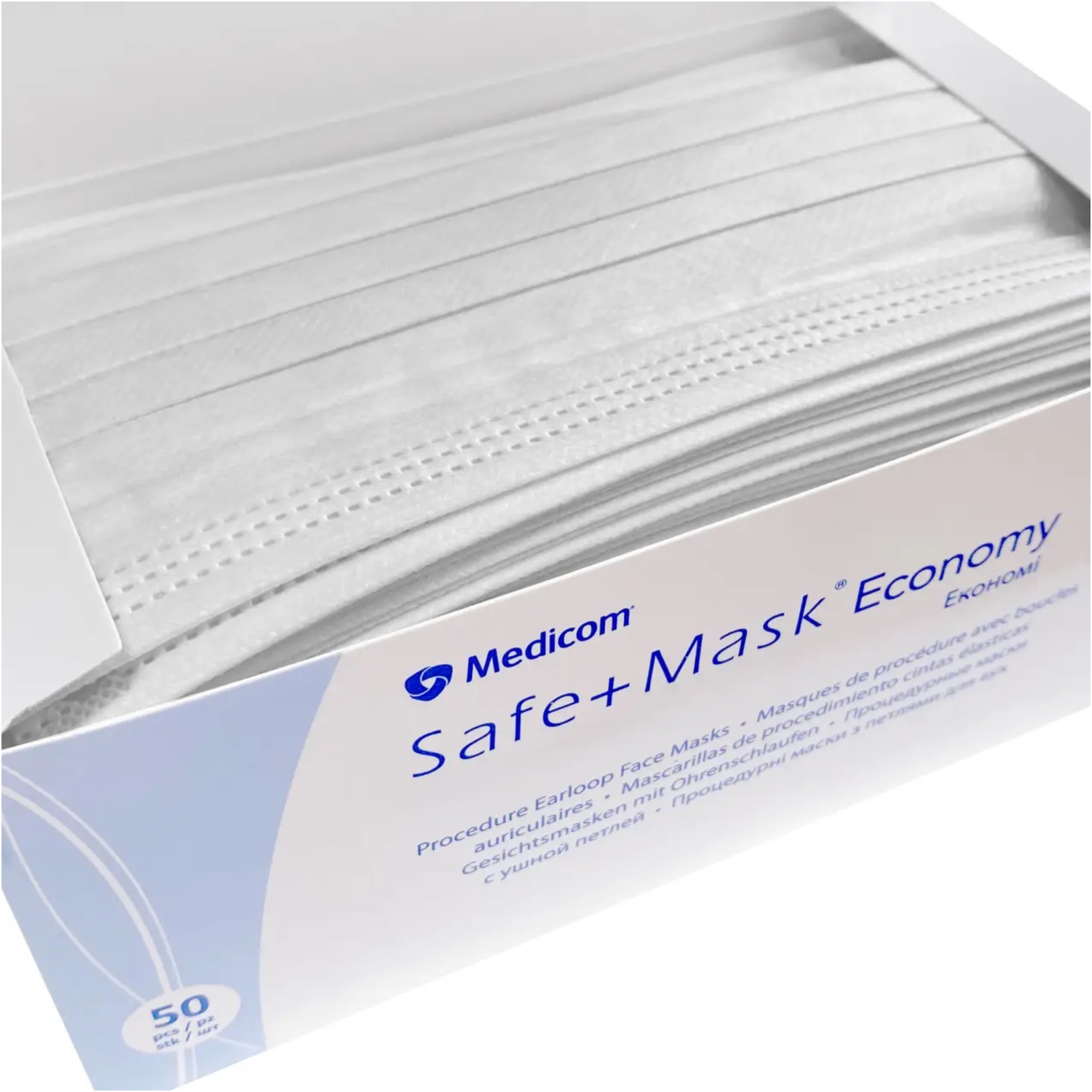 MEDICOM Safe+Mask Economy Маски медичні захисні Білі, 50 шт/уп