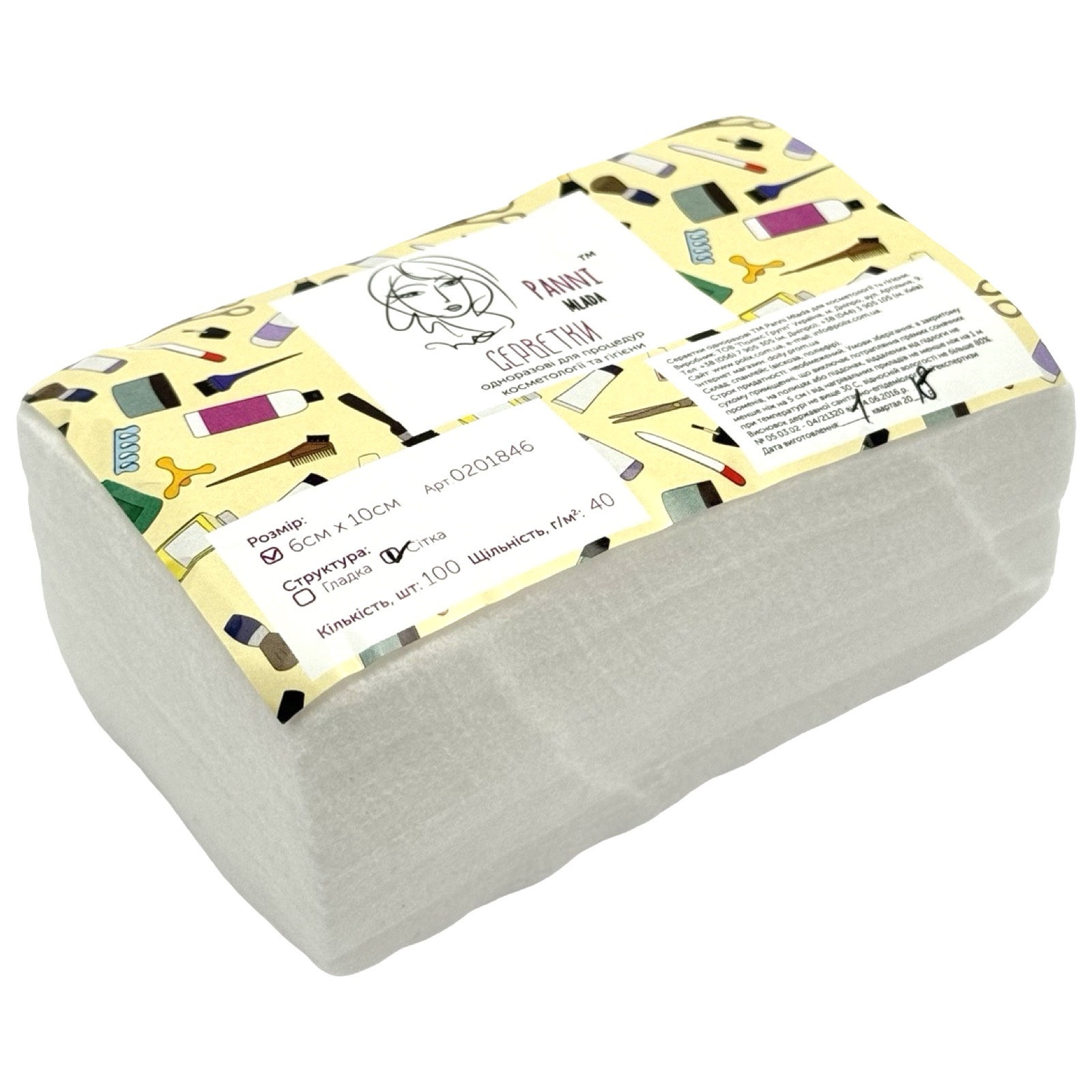 PANNI MLADA Серветки безворсові зі спанлейсу МІНІ 6х10 см (100 шт/пач) Текстура:сітка