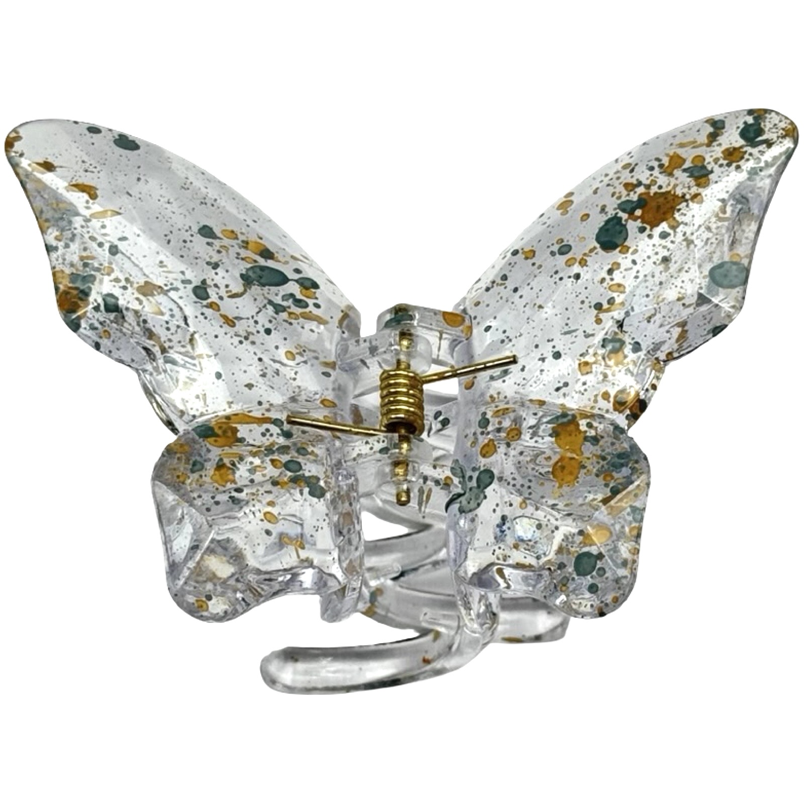 Краб для волосся великий метелик прозорий (бризки пастельно-сірі), 1 шт