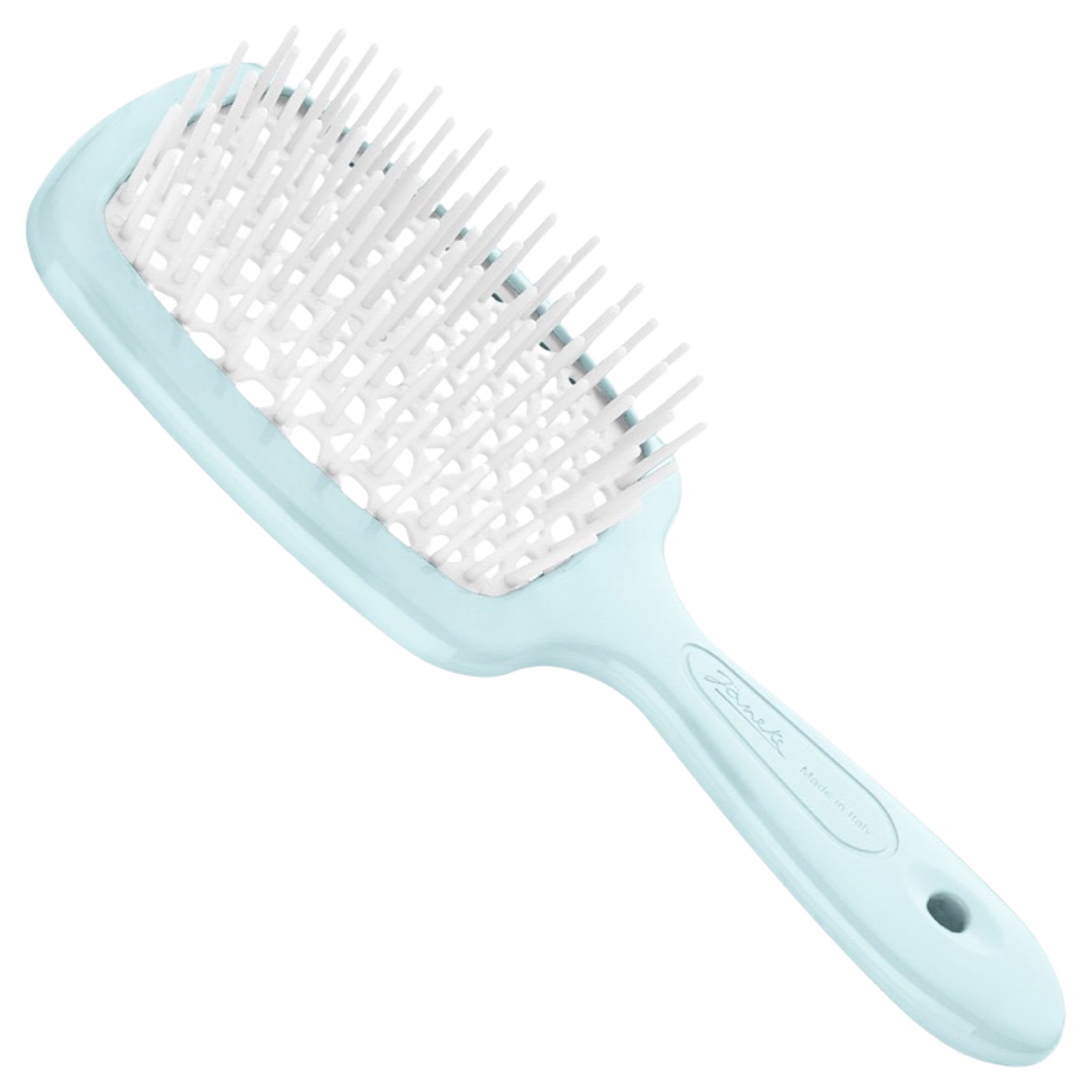 Щітка для волосся від бренду Janeke є компактною версією оригінальної Superbrush. Не дивлячись на менші розміри, вона не втратила своїх супервластивостей, а навпаки — стала функціональнішою, оскільки тепер щітка не займе багато місця в сумці та її можна брати з собою в дорогу, спортзал, похід тощо. Вона чудово справляється з сухим та вологим волоссям, а спеціальна конструкція пришвидшує процес сушіння феном та захищає локони від теплового пошкодження.