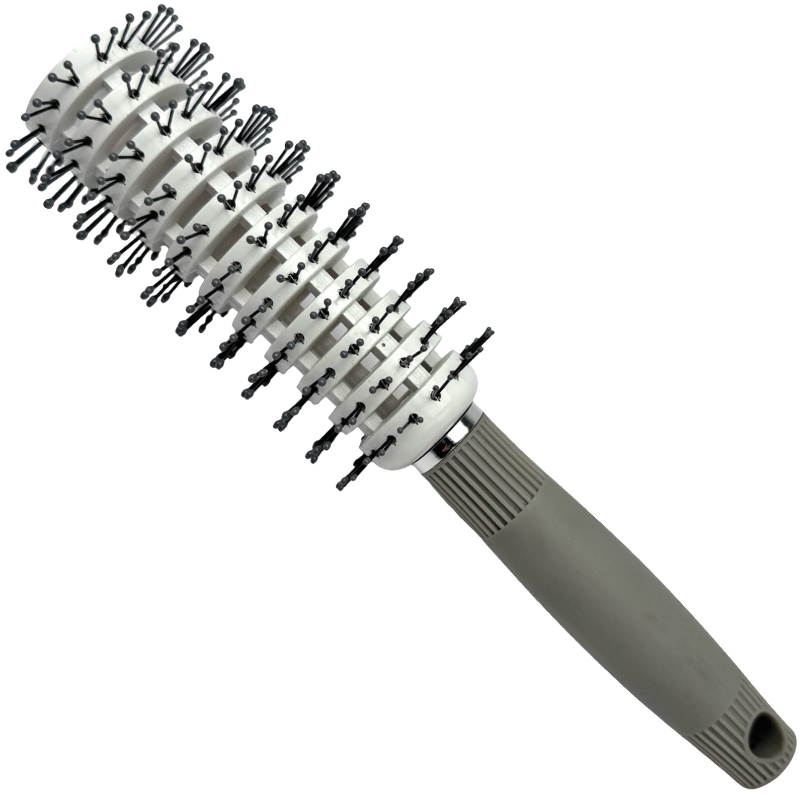 Професійний брашинг круглої форми з комбінованою натуральною та нейлоновою щетиною дає змогу укладати волосся будь-якої довжини.