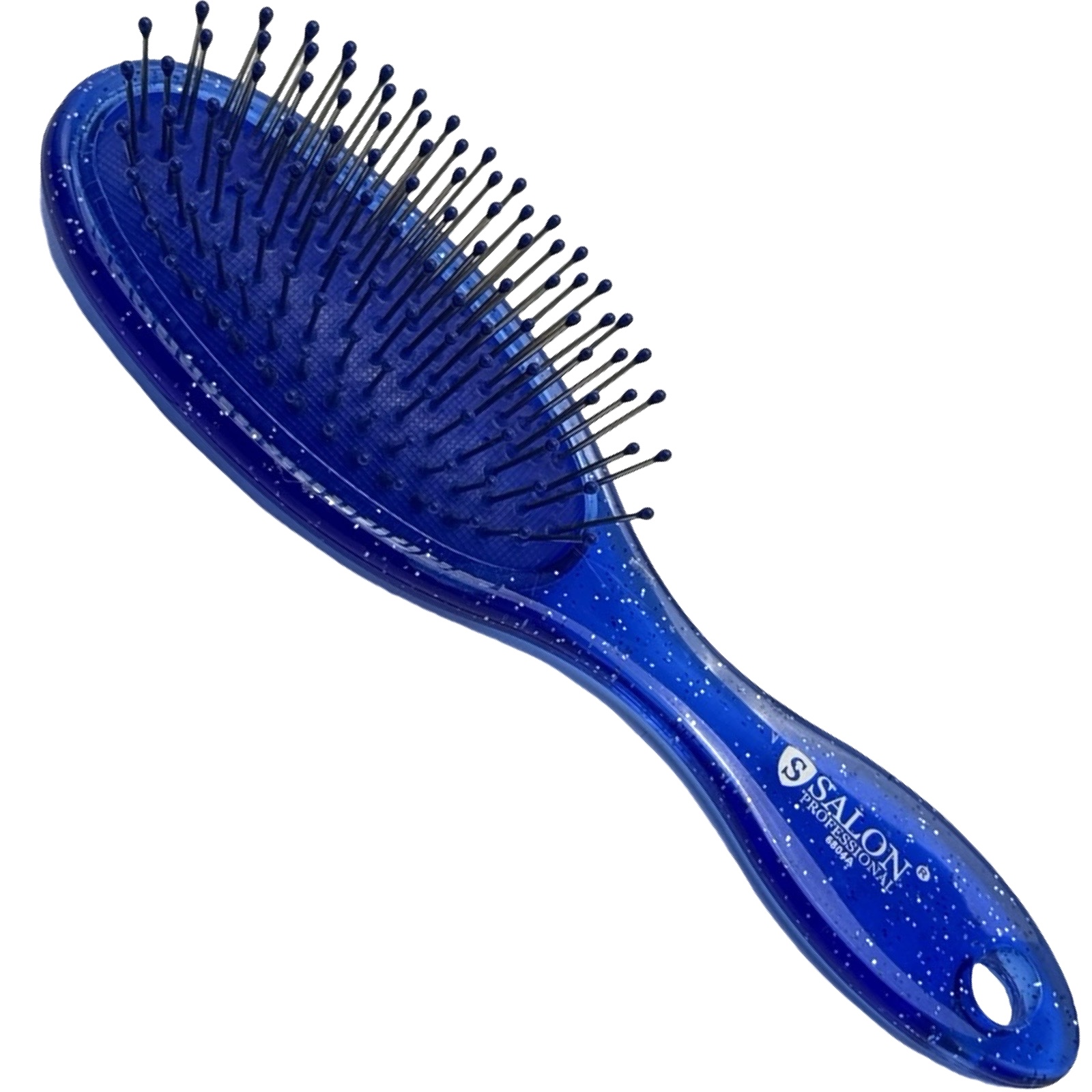 Щітка Salon Professional масажна пластикова, 6804A – гребінець для волосся з металевими зубцями та стильним корпусом із термопластику. Кінчики зубців оснащені пластиковими кульками, які м'яко та делікатно масажують шкіру голови, стимулюють кровообіг та зростання нових волосків. Перукарський інструмент делікатно прочісує і розплутує як сухе, так і вологе волосся.