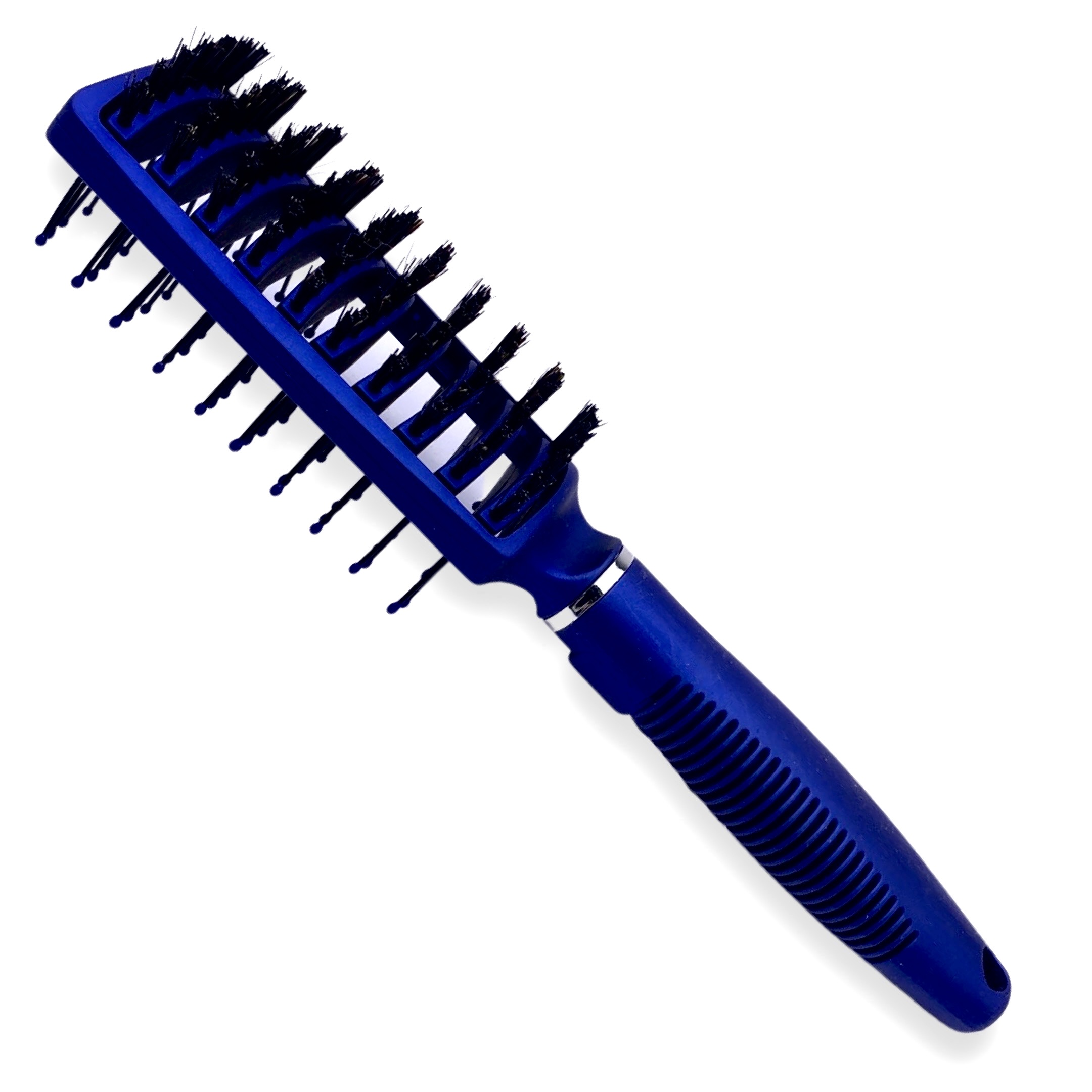 Salon Professional (синій) B9566 – тунельна щітка для укладання волосся феном із двома робочими сторонами та зубчиками різної довжини. Щітка синього кольору оснащена зубчиками з наконечниками-кульками, їхня мета м'яко масажувати шкіру голови і не травмувати її. Численні зубчики розділяють і пригладжують волоски, щітка чудово тримає масу волосся при укладанні феном, тим самим сприяє створенню гарного прикореневого об'єму. Якісний матеріал та продумана конструкція дозволять швидко зробити гарне укладання, мінімізуючи шкоду для волосся та інструменту. Корпус щітки має ребристе покриття, завдяки цьому вона комфортно лежить у руці і не вислизає.