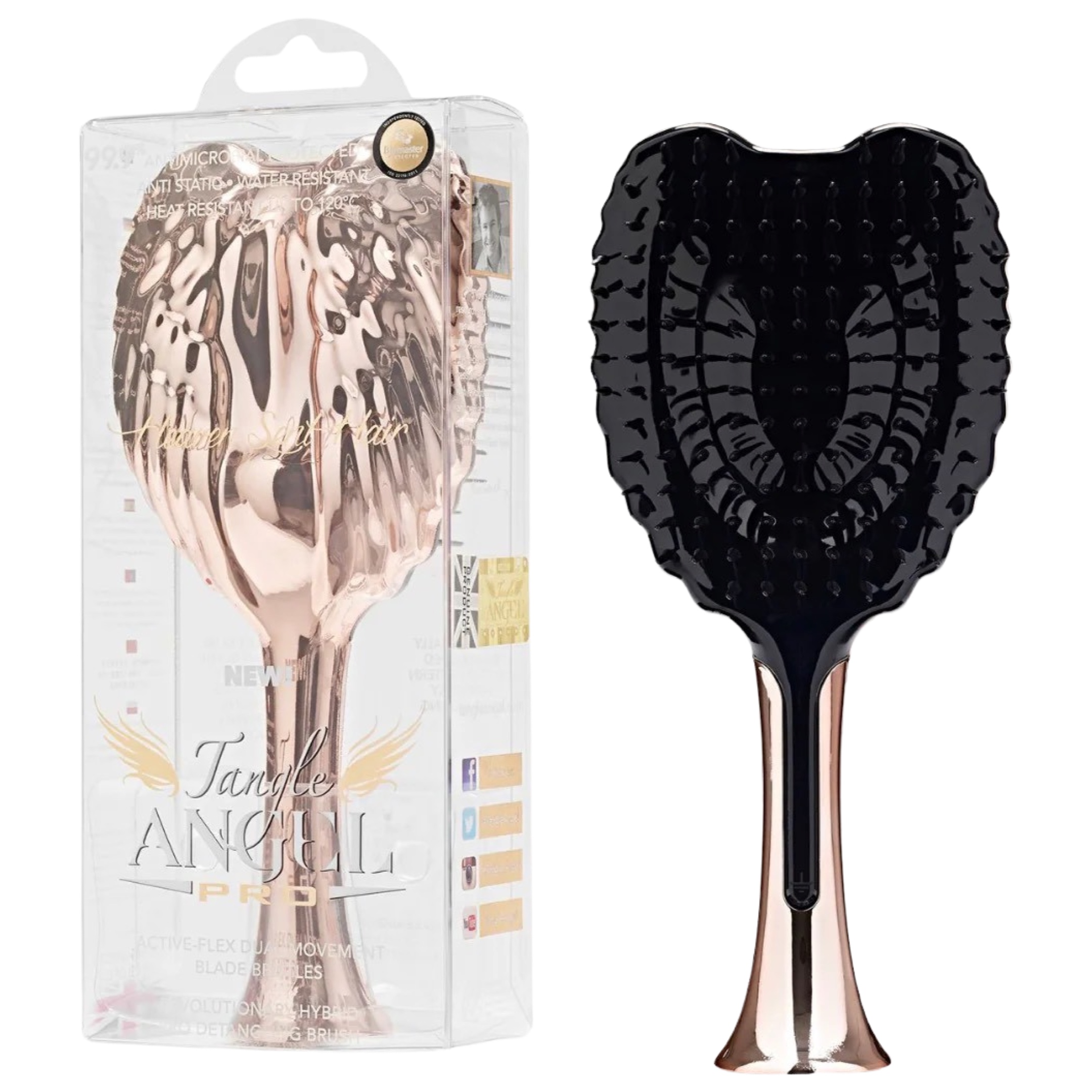Антистатичне. Антистатичні властивості в поєднанні з унікальною заземляючею вставкою в ручці гребінця Tangle Angel Pro забезпечать контакт при утриманні. Запобігають випаданню волосся, залишаючи волосся гладкими і шовковистим.