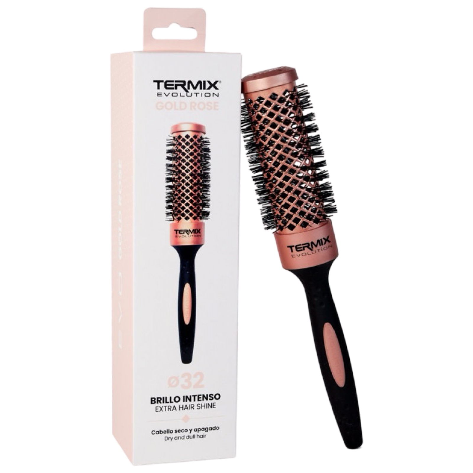 Termix Evolution Gold Rose - це обмежена серія лінії Termix Evolution, спеціально розроблена для догляду за пористим, сухим і тьмяним волоссям для відновлення їх життєвої сили і блиску. Новий склад волокна та технологія щітки призначені для швидкого сушіння без сильного нагріву і, отже, для здоровішого сушіння волосся феном.