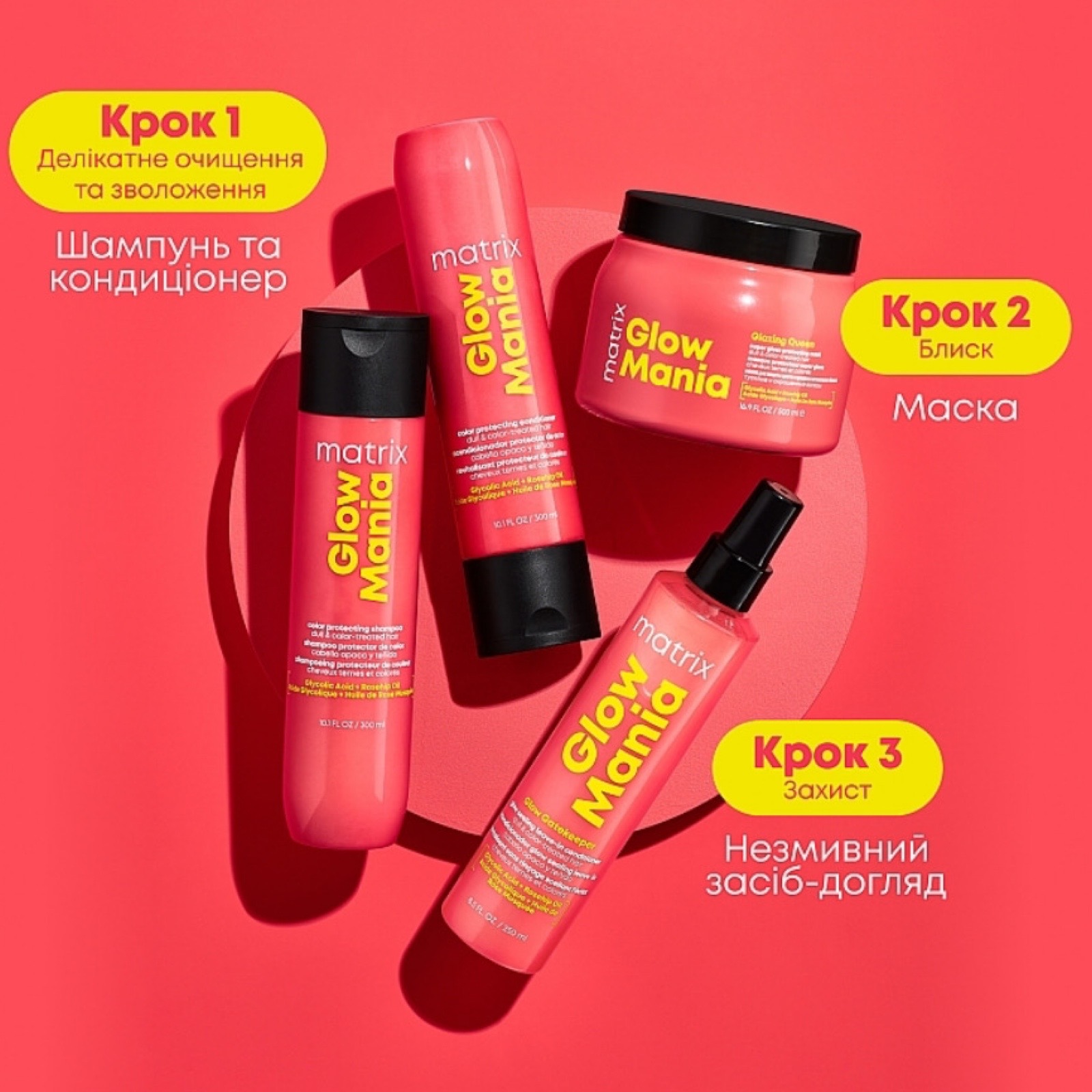 Кондиціонер Matrix Glow Mania Color Protecting Conditioner створений для захисту кольору фарбованого волосся та посилення його сяйва. Формула з гліколевою кислотою та олією шипшини забезпечує ламінуючий ефект, який допомагає зберегти яскравість кольору та здоровий блиск до 8 тижнів. Засіб м'яко розплутує волосся, роблячи його більш м'яким, гладким і блискучим.