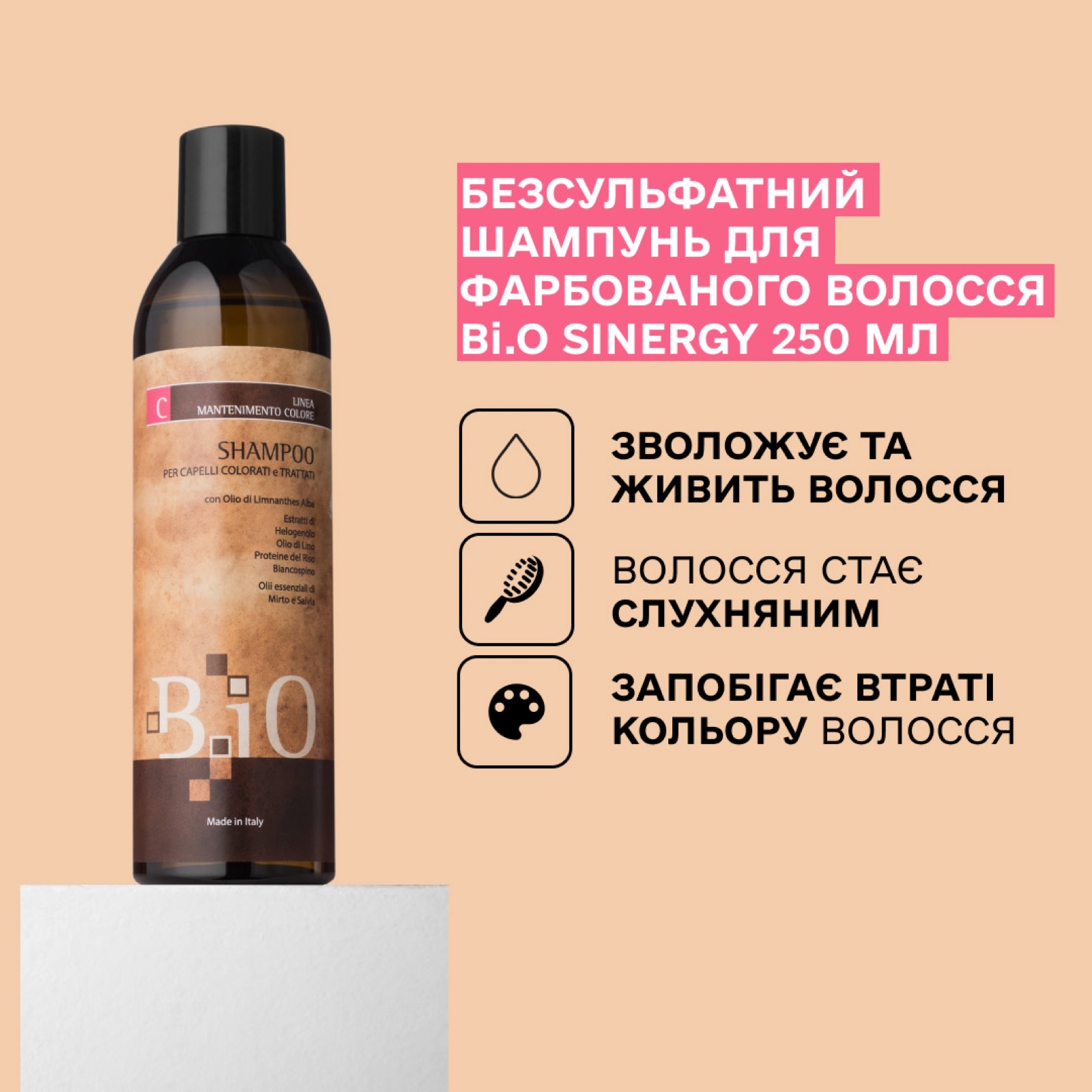 SINERGY Безсульфатний шампунь для фарбованого волосся B.iO, 250 мл