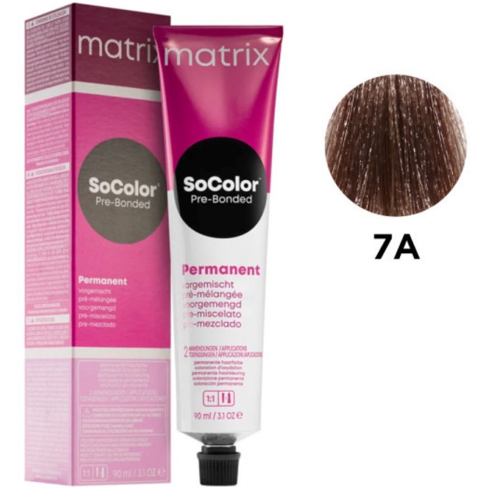 Matrix SoColor Pre-Bonded 7A стійка крем-фарба, блондин попелястий, 90 мл