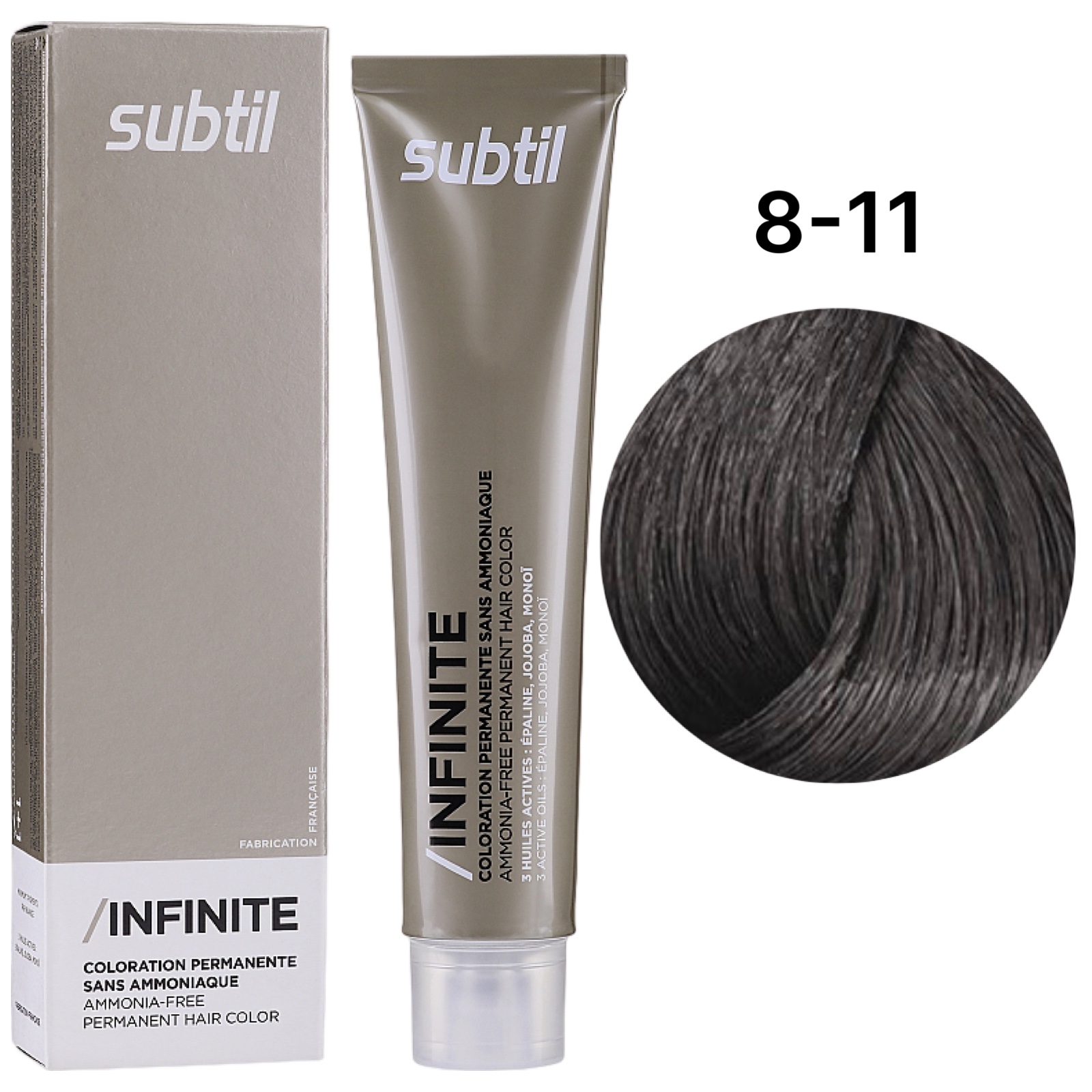 SUBTIL Infinite Стійка безаміачна крем-фарба для волосся 8-11 Світлий блондин інтенсивний попелястий, 60 мл