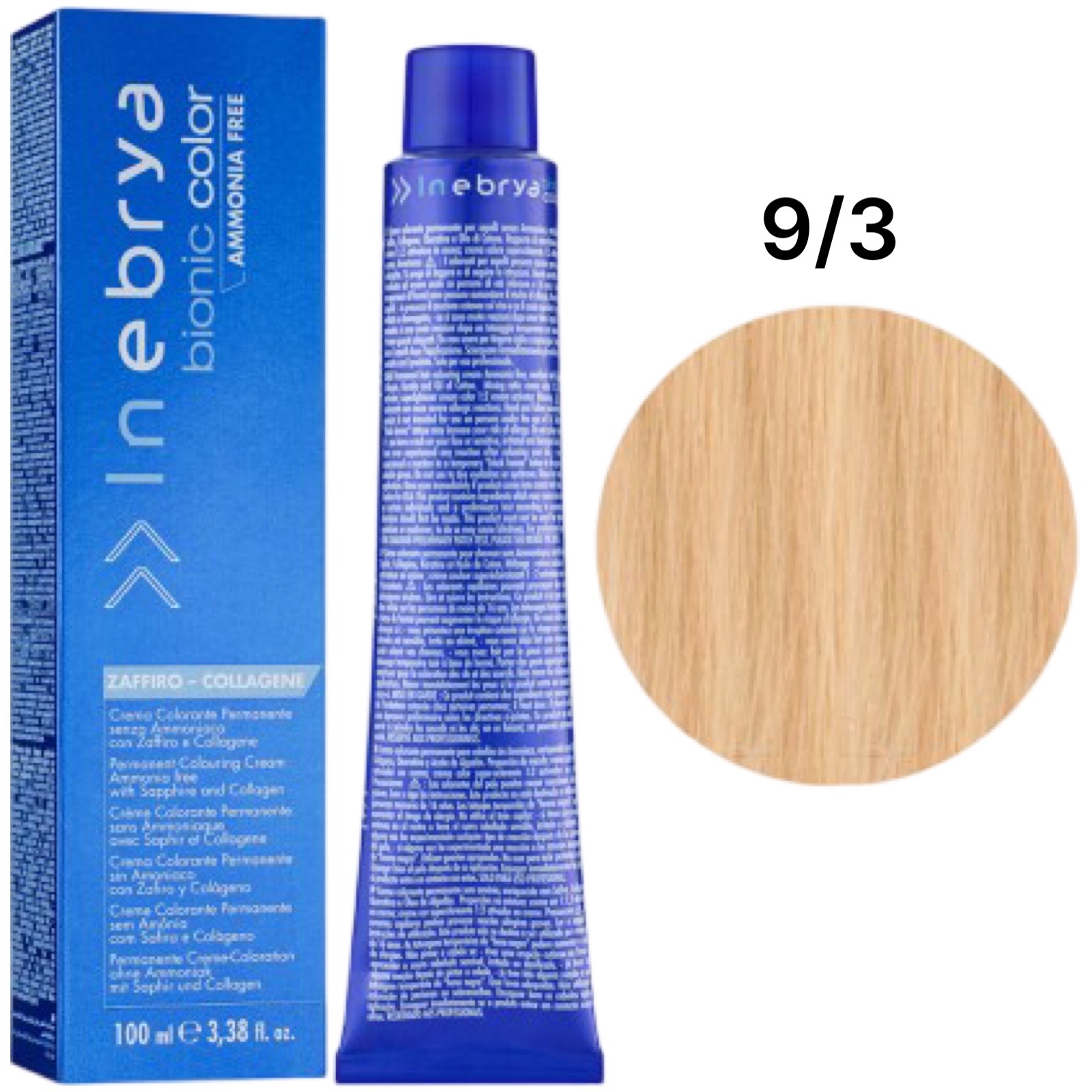 INEBRYA Bionic Крем-фарба без аміаку 9/3 Золотистий дуже світлий блондин, 100 мл