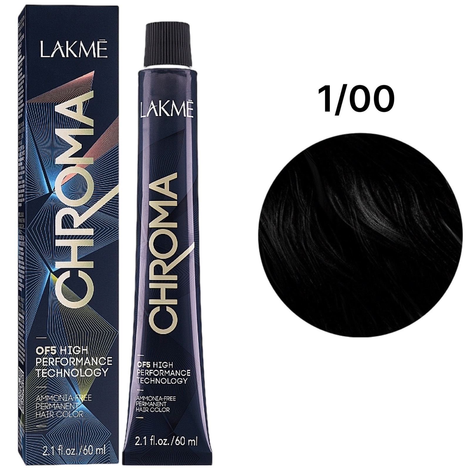 LAKME Chroma Permanent Hair Color Безаміачна фарба для волосся 1/00 Black, 60 мл