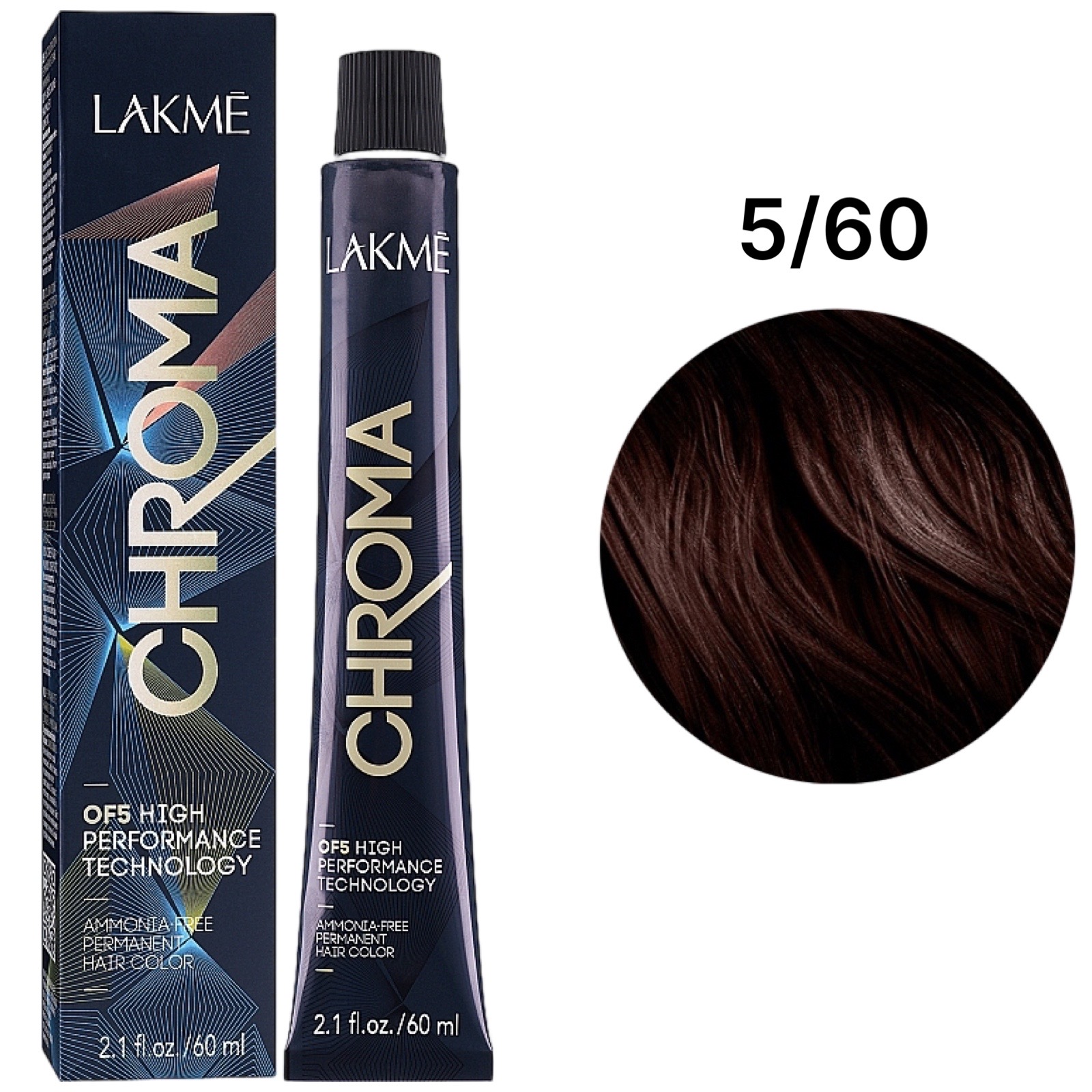 LAKME Chroma Permanent Hair Color Безаміачна фарба для волосся 5/60 Chestnut Light Brown, 60 мл