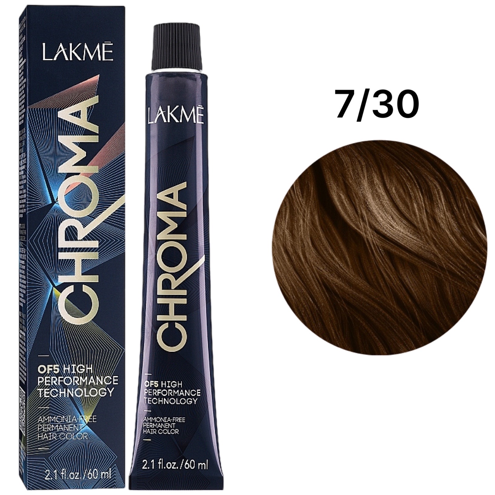 LAKME Chroma Permanent Hair Color Безаміачна фарба для волосся 7/30 Gold Medium Blonde, 60 мл
