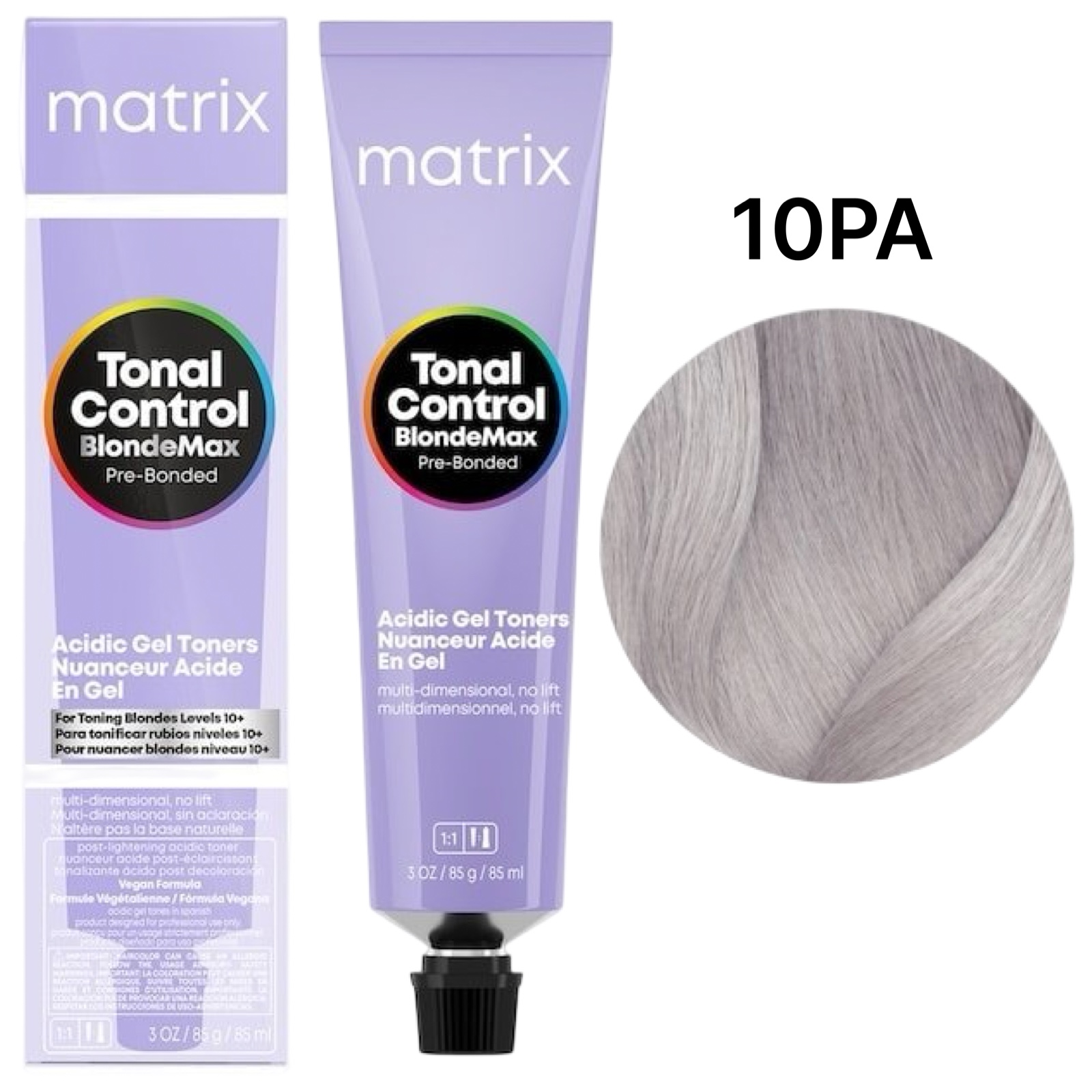 Tonal Control Pre-Bonded – перша серія гель-кремових тонерів із видимим окисленням у реальному часі. Вони ідеально підходять для надання блиску та тонування волосся. Tonal Control забезпечує стійкі та передбачувані результати з високим блиском та додатковим зволоженням. Tonal Control BlondeMax – колекція для тонування найсвітліших відтінків блонду (рівні 10 та 11). Гель-барвник Matrix Tonal Control BlondeMax Pre-Bonded Gel призначений для мелірованого або іншим чином освітленого волосся. Забезпечує максимальний контроль кольору після освітлення. У процесі окислення він поступово темніє, тому ви точно знаєте, коли слід обполіскувати волосся. Кислотний pH тонера ефективно нейтралізує небажані відтінки, закриває кутикулу і надає волоссю сяючих відблисків. Збагачений ексклюзивним концентратом для захисту зв'язків, що захищає внутрішню структуру волосся при кожному фарбуванні.