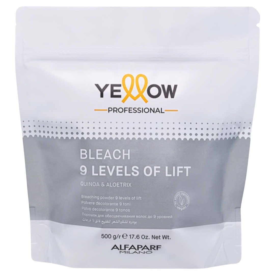 Bleach Yellow Powder ідеально підходить для повного знебарвлення, мелірування, часткового фарбування або будь-яких інших освітлювальних технік. Цей продукт є ключовим елементом для створення ідеального образу, що підкреслює красу та здоров'я волосся.