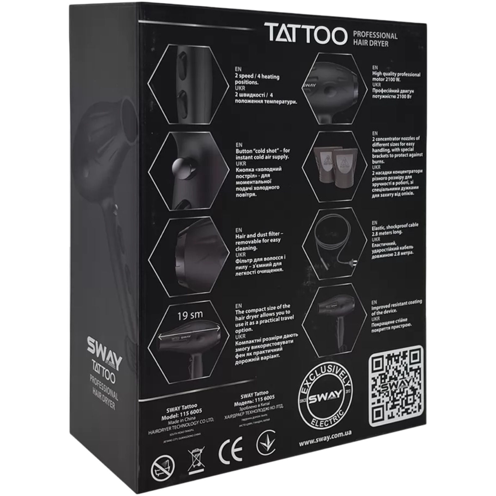 SWAY Tattoo Професійний фен, 2100 Вт