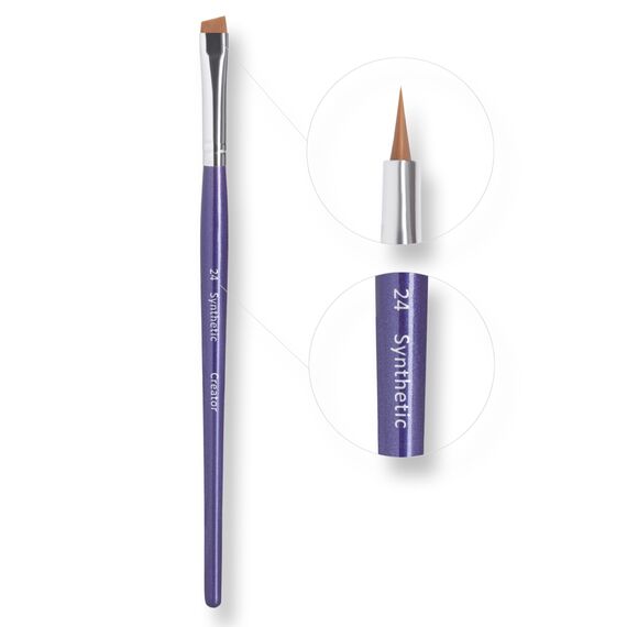 Пензель №24 від бренду Creator Synthetic - широкий, скошений, пружний, синтетичний пензель. Ідеально підходить для викладання барвника для брів.