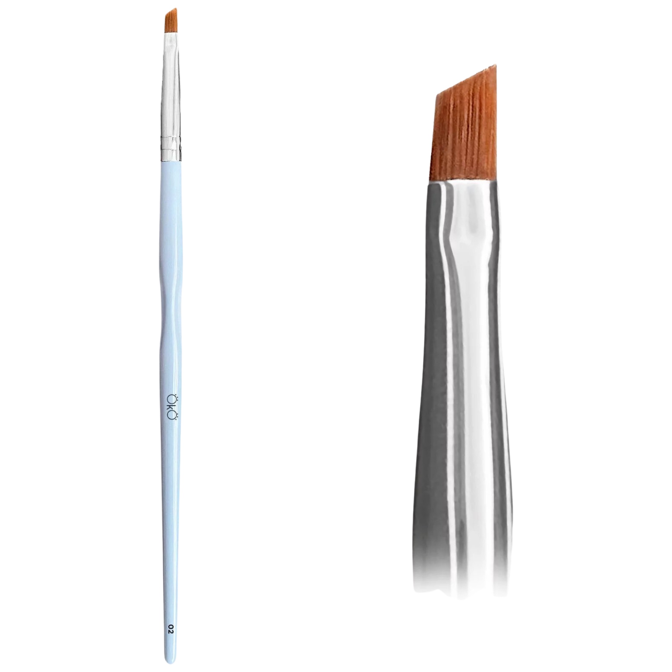 Пензлик OKO №2 ідеальний для промальовування ультратонких ліній, ярусного фарбування. Розмір і форма пензлика дозволяють підібратися до важкодоступних місць брови, не торкаючись волосків.
