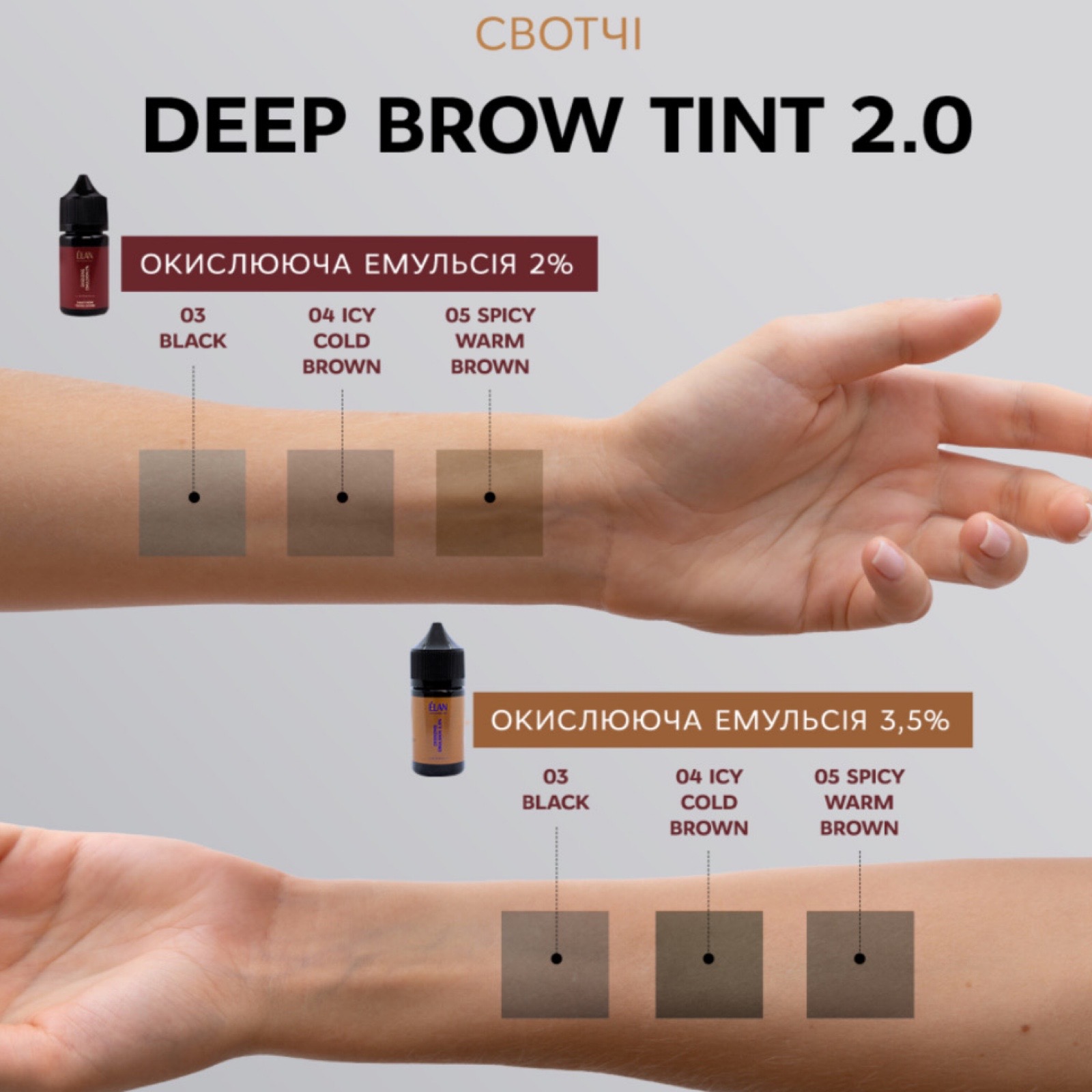 Фарба для брів з тривалим ефектом "Deep Brow Tint" - інноваційна розробка бренду ELAN professional line - одна із складових авторської системи фарбування брів SMART BROW TINTING SYSTEM.