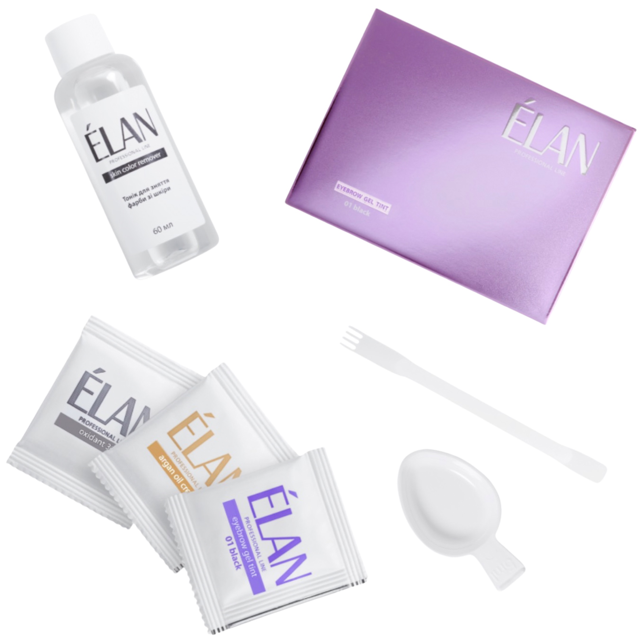 Гель фарба Elan для брів і вій "ÉLAN" — засіб з унікальною формулою і технологією нанесення, які запатентовані і не мають аналогів у світі. Її особливість — використання барвника з доглядаючими компонентами для зволоження волосків і шкіри. Завдяки використанню етаноламіну як лугу, гель фарба Elan № дерматологічно безпечна і придатна для використання вагітними жінками за відсутності непереносимості до компонентів із складу. В лінійку продукції входить 3 кольори, які легко змішуються для отримання бажаного відтінку.