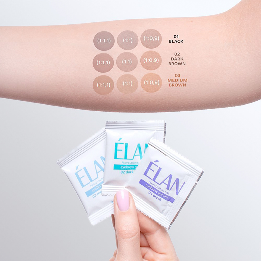 Гель фарба Elan для брів і вій "ÉLAN" — засіб з унікальною формулою і технологією нанесення, які запатентовані і не мають аналогів у світі. Її особливість — використання барвника з доглядаючими компонентами для зволоження волосків і шкіри. Завдяки використанню етаноламіну як лугу, гель фарба Elan № дерматологічно безпечна і придатна для використання вагітними жінками за відсутності непереносимості до компонентів із складу. В лінійку продукції входить 3 кольори, які легко змішуються для отримання бажаного відтінку.