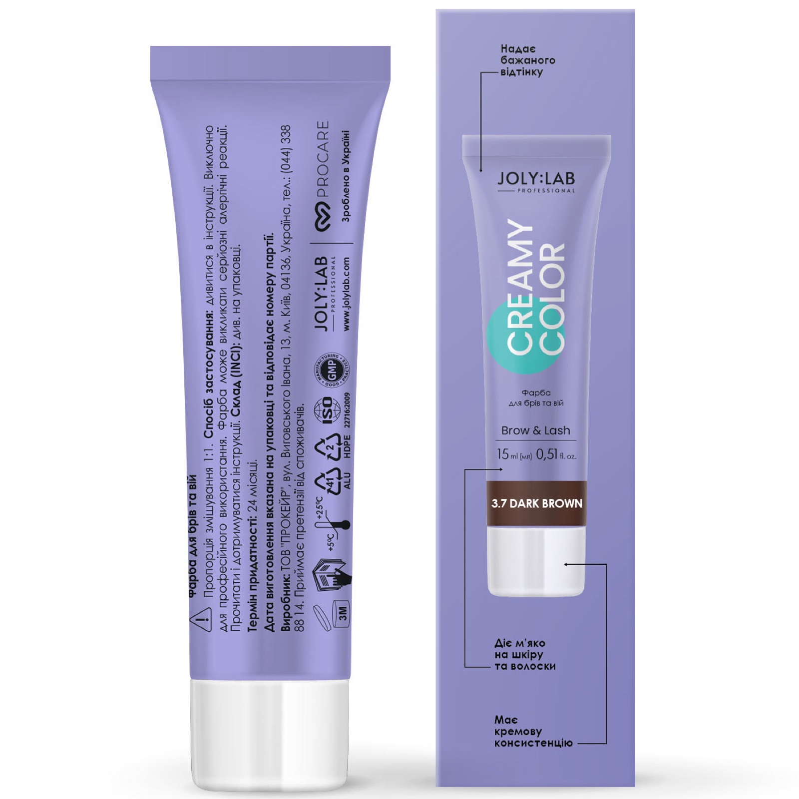 JOLY:LAB Creamy Color Фарба для брів та вій темно-коричнева, 15 мл
